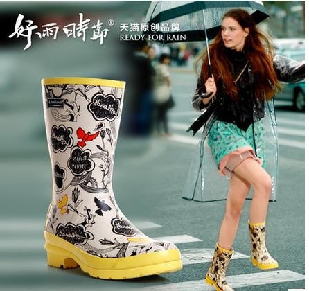 Drop Shipping 2013 Women Fashion Brand Low Heels Waterproof Wellies Water Boots High Top Long Rainboots Black Red Rain Shoes193