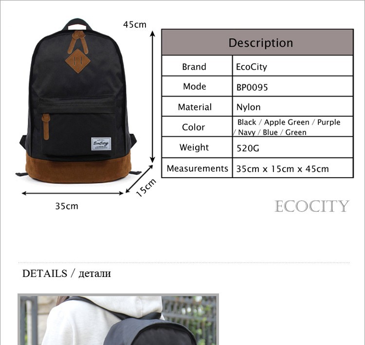 EcoCity School Bags For Girls And Boys Women And Men Travel Backpack Students Computer Backpacks Rucksack Herschel Style