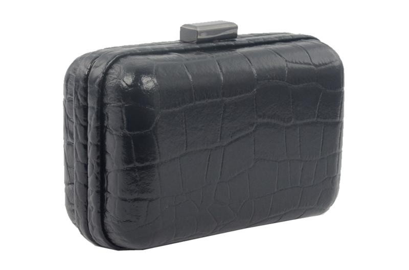 Elegant Women Genuine Leather Closure Hard Case Evening Bag Clutch with Chains Purse Hard shell clutch