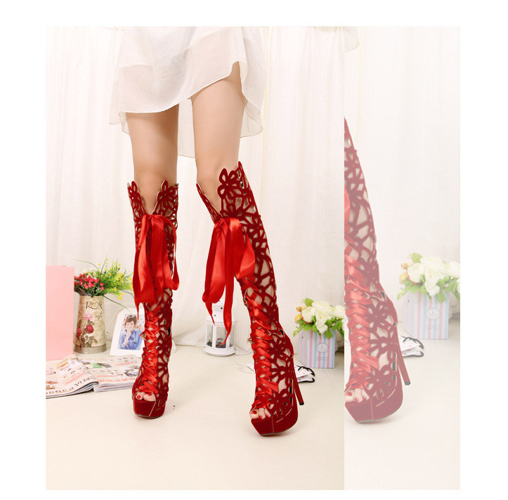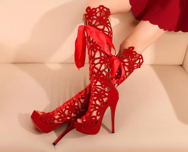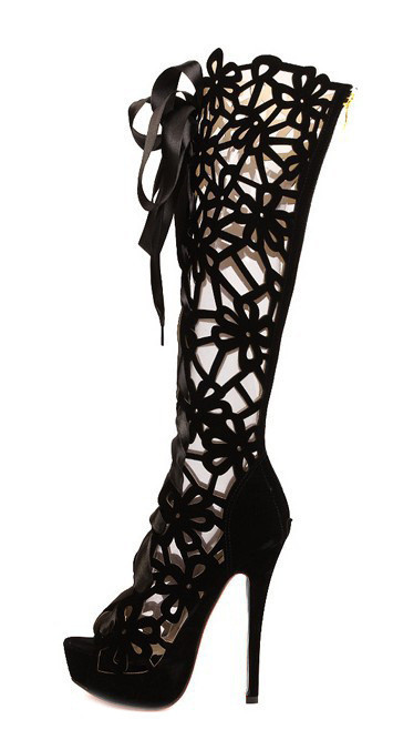 European and American classic big nightclub cool boots high-heeled boots hollow