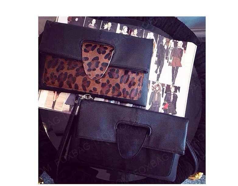 European and American fashion horsehair leopard clutch handbag envelope retro shoulder bag diagonal package Handle