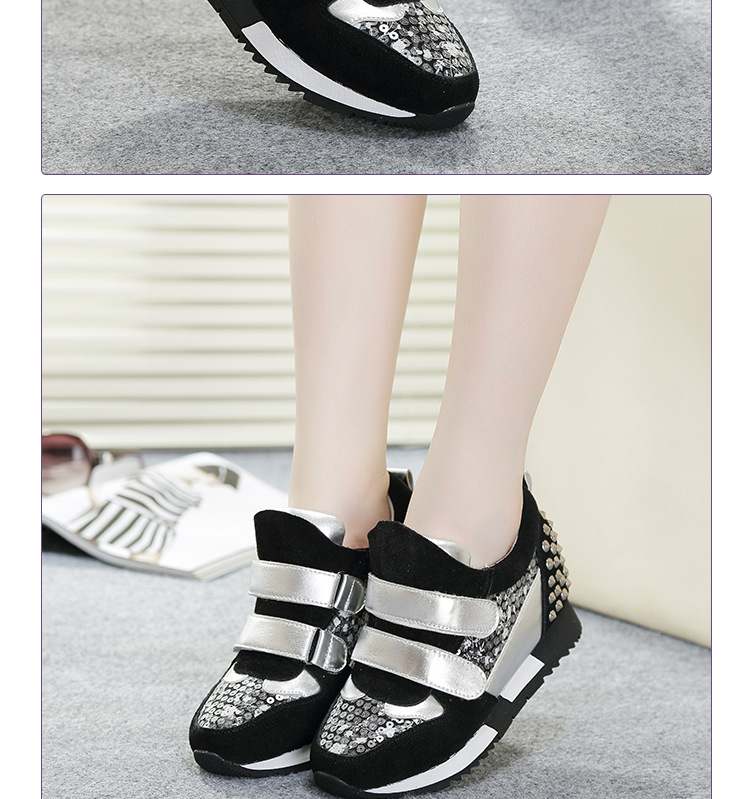 European Increased Shoes Women Leather Sequins Casual Shoes Platform Sneakers Genuine Leather Velcro Female Rivets Sneakers