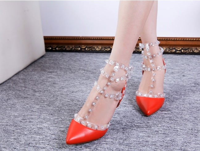 european lady high heel sandal pointed toe women wedding dress shoe sexy transparent PVC crystal shoe party eur size 34-39
