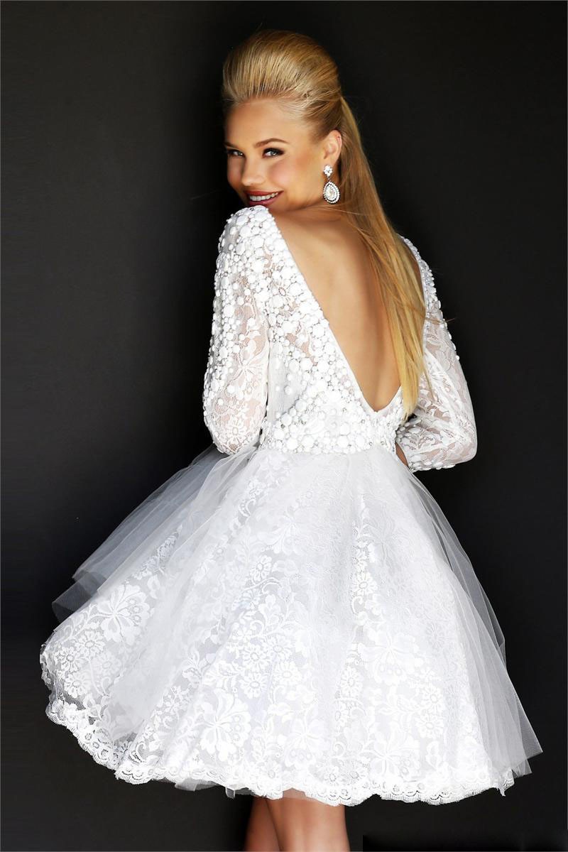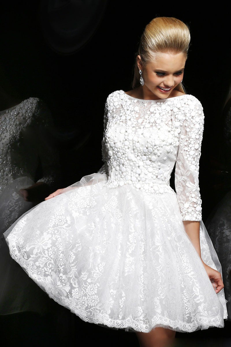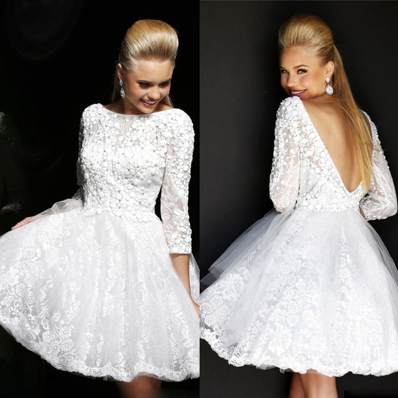 Fashion Backless Lace short bride dresses for weddings Luxury Crystal White Tulle women wedding dress 2014 short new arrival