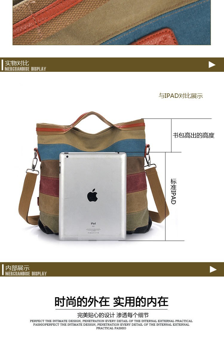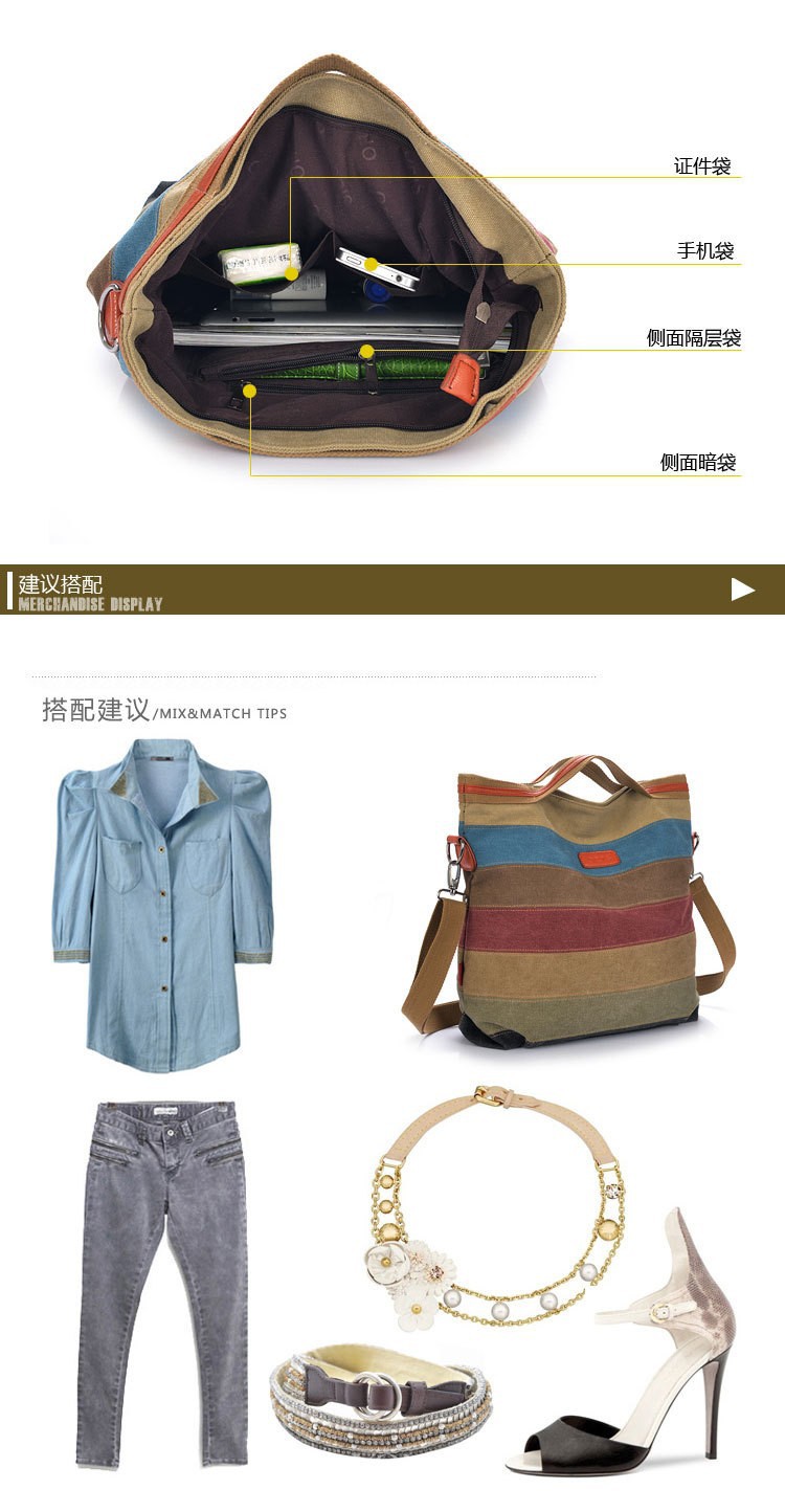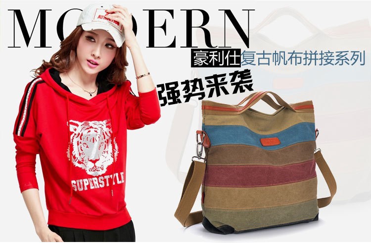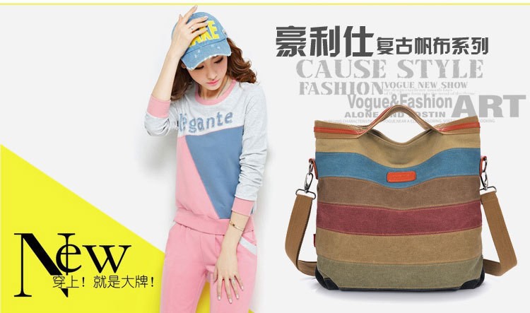 Fashion Color stripe canvas women handbag brand simple shoulder cross-body bags trend girl splicing satchel bag messenger bag