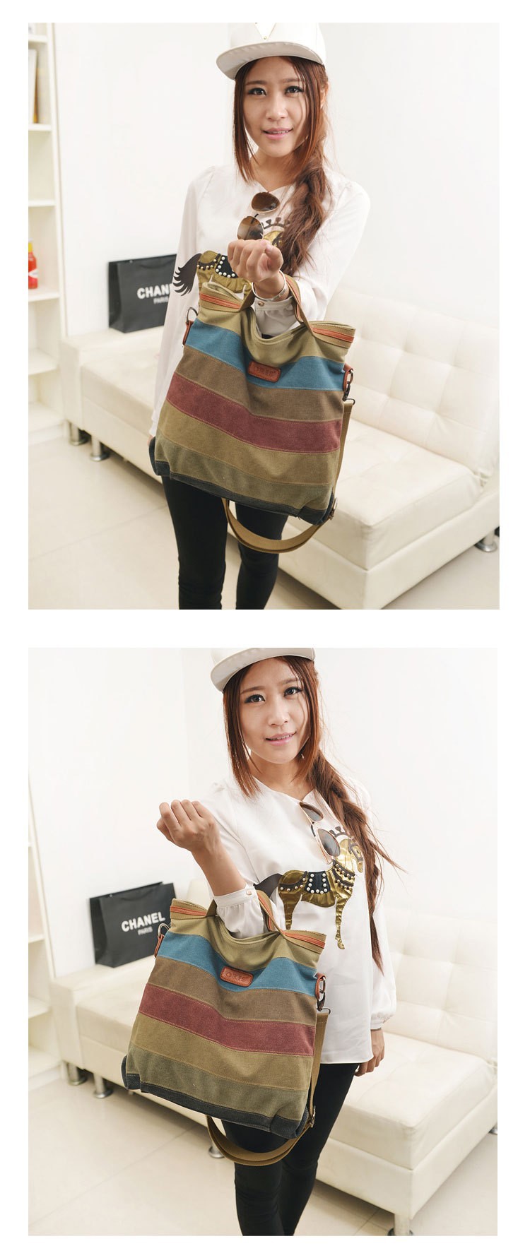 2014 cheap hot new women travel bags stripe canvas bag fashion Messenger bag laptop shoulder bag beach free shipping