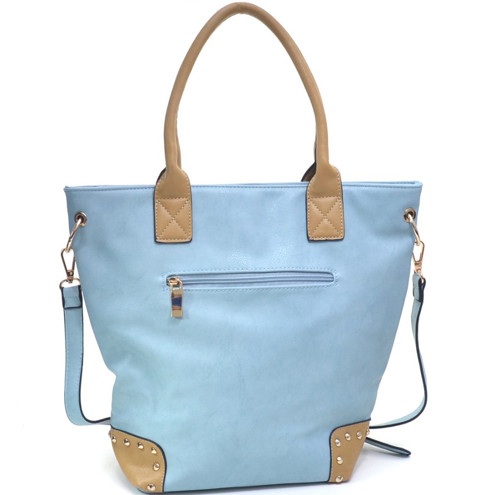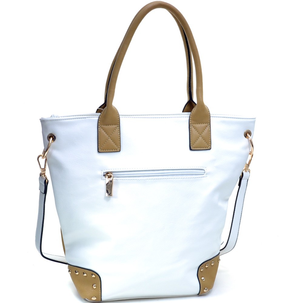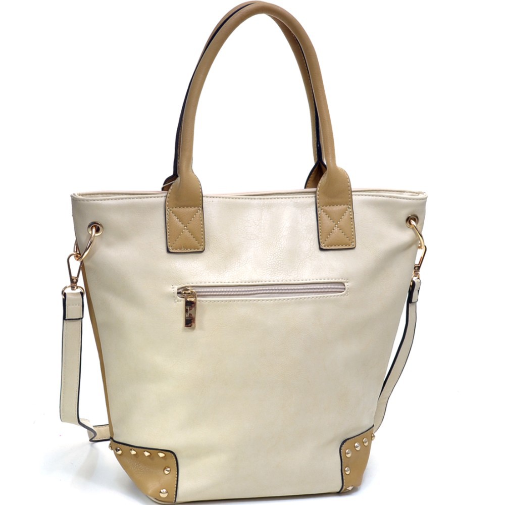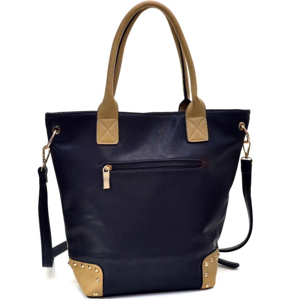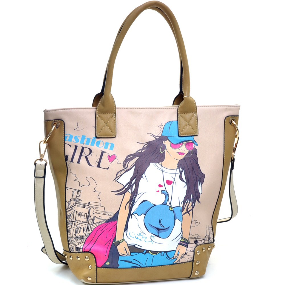 Fashion Girl Double Studded Print Removable Strap Rose Gold Accented Tote