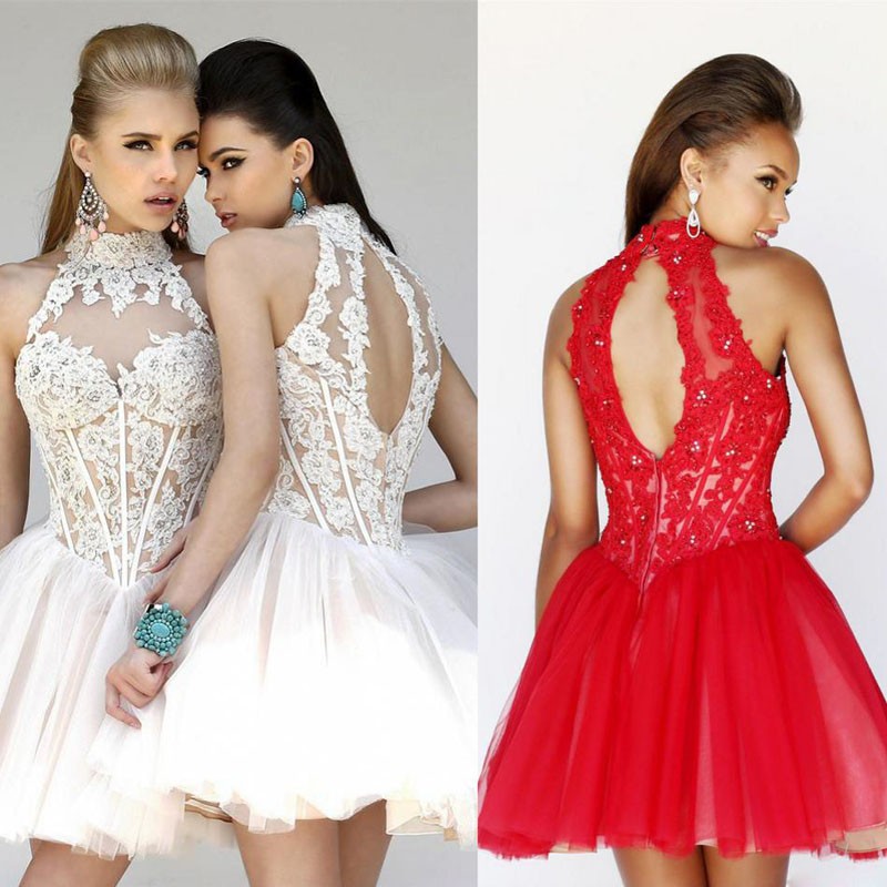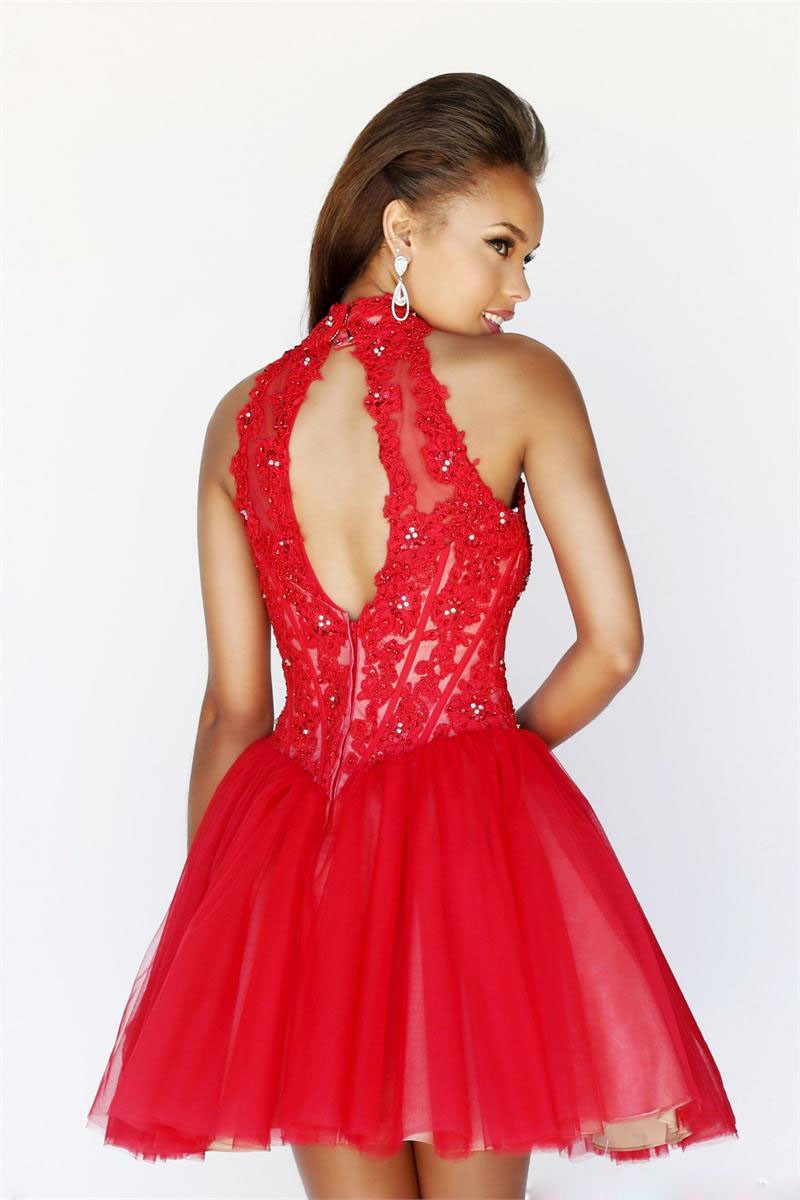 Fashion High Neck Lace short bride dresses for weddings Luxury Crystal Red Tulle women wedding dress 2014 short new arrival