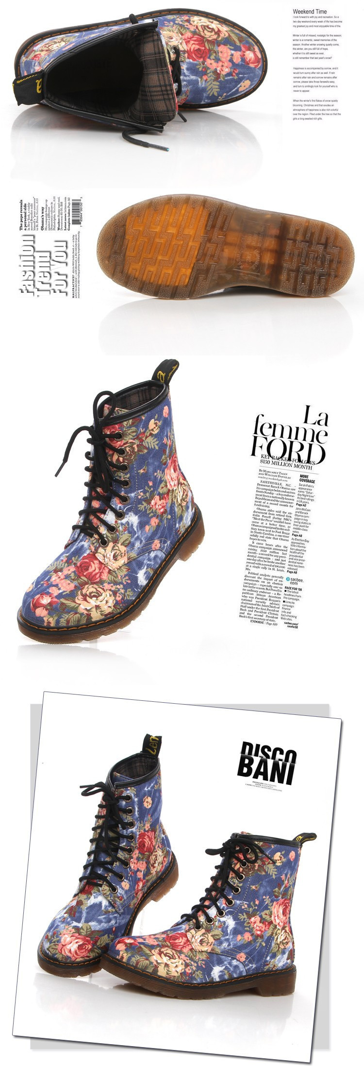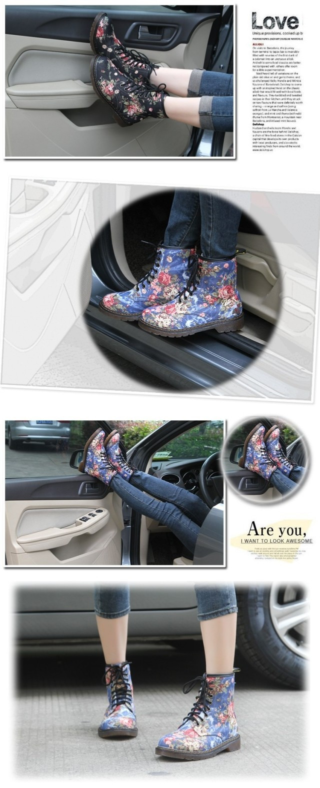Fashion Lacing Women Boots autumn Martin Boots British Style Vintage Big Flower women Shoes Woman Motorcycle Boots Ankle Boots