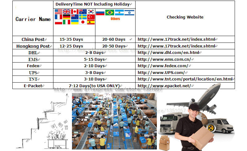 1. We ship all of our items worldwide within 48 hours by EMS/DHL or Hongkong Post/China Post ,the shipping way will depend