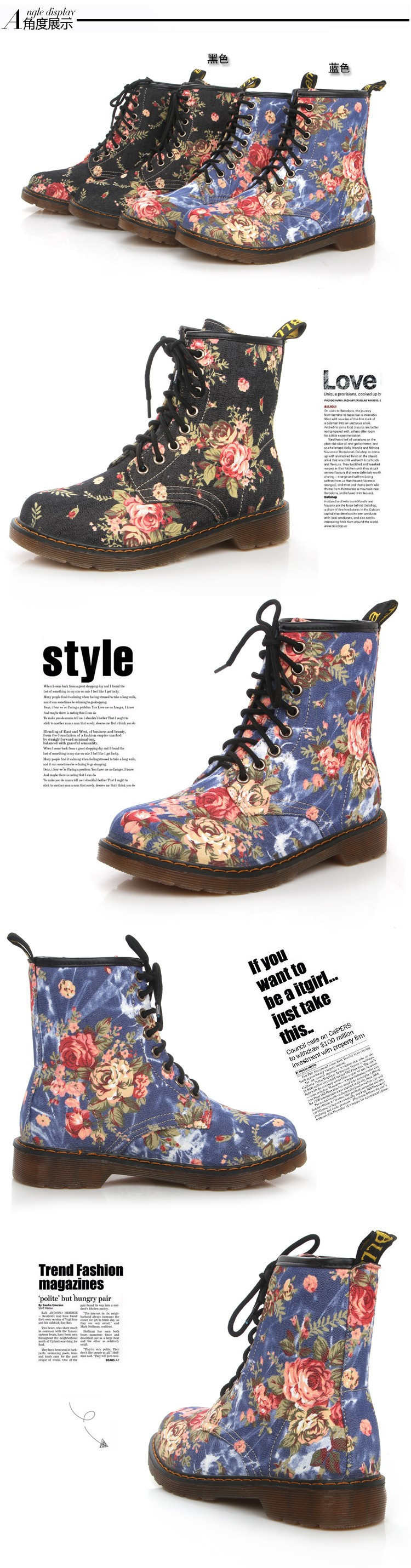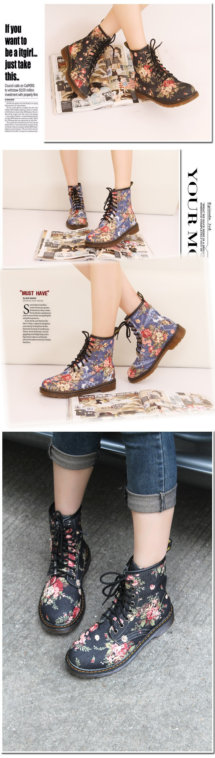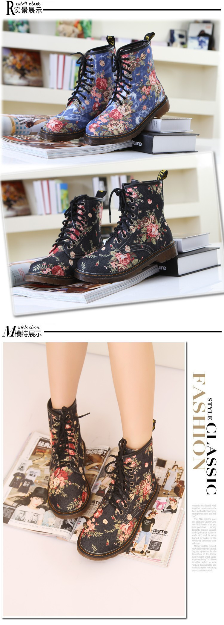 Fashion Lacing Women Boots autumn Martin Boots British Style Vintage Big Flower women Shoes Woman Motorcycle Boots Ankle Boots
