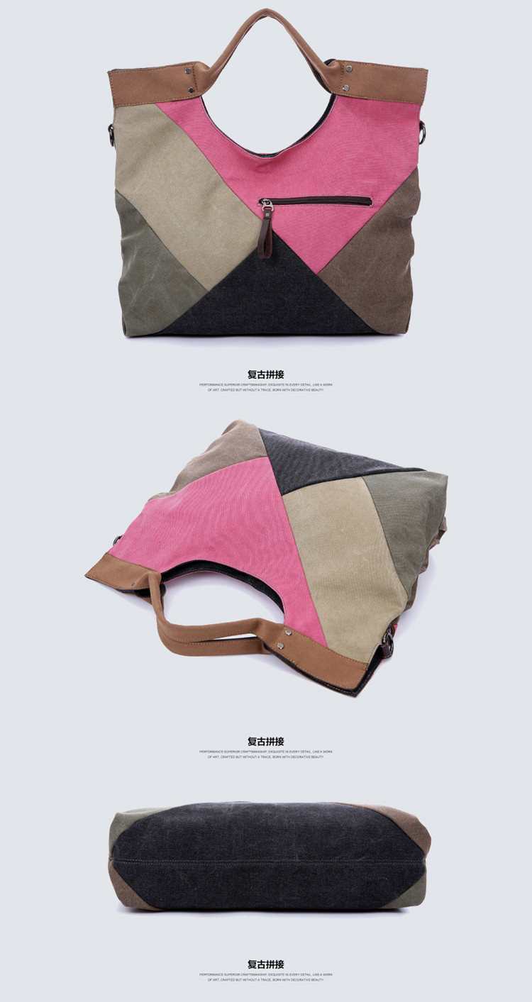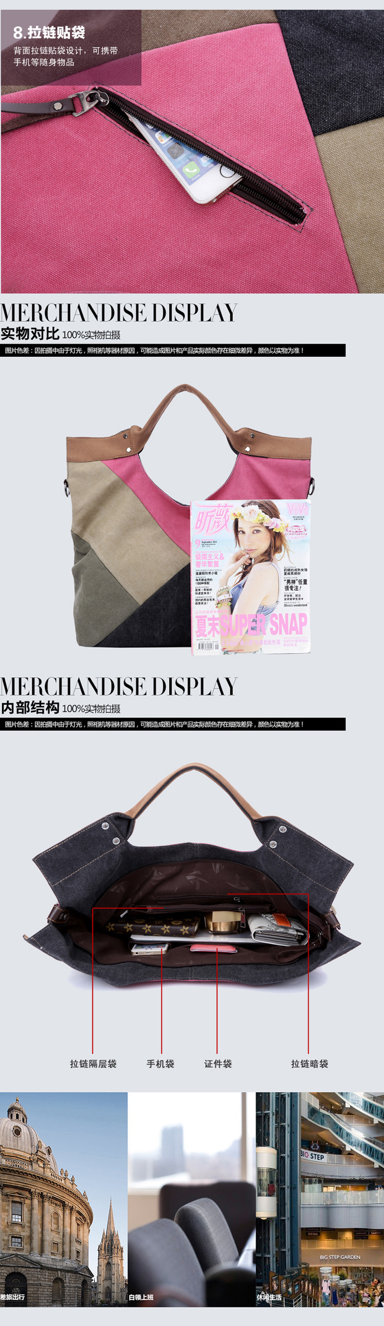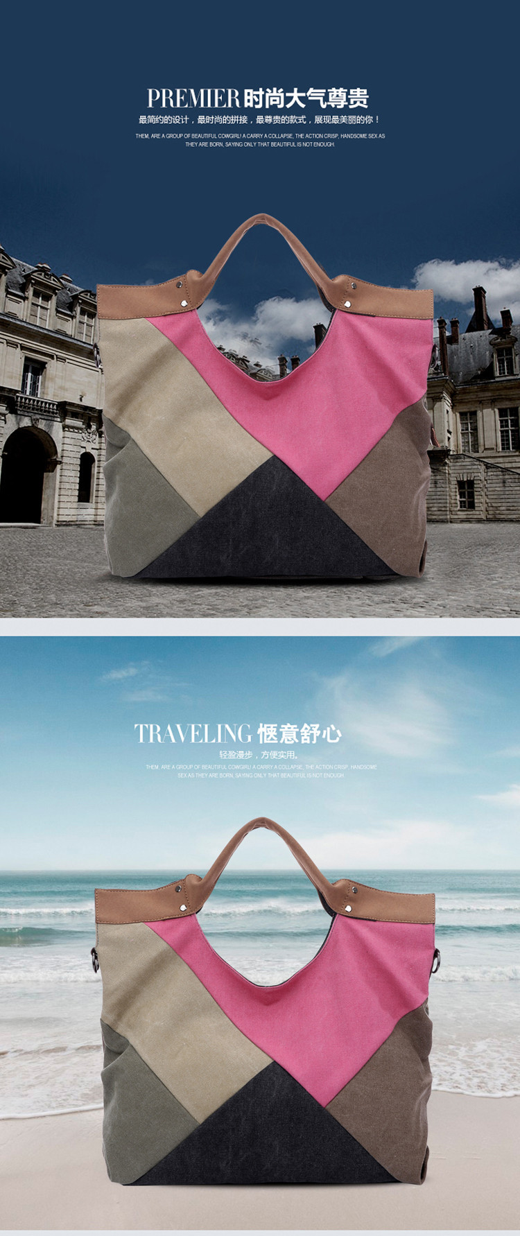 Fashion patchwork canvas bag handbag women s handbag 2014 women s shoulder bag messenger bag free