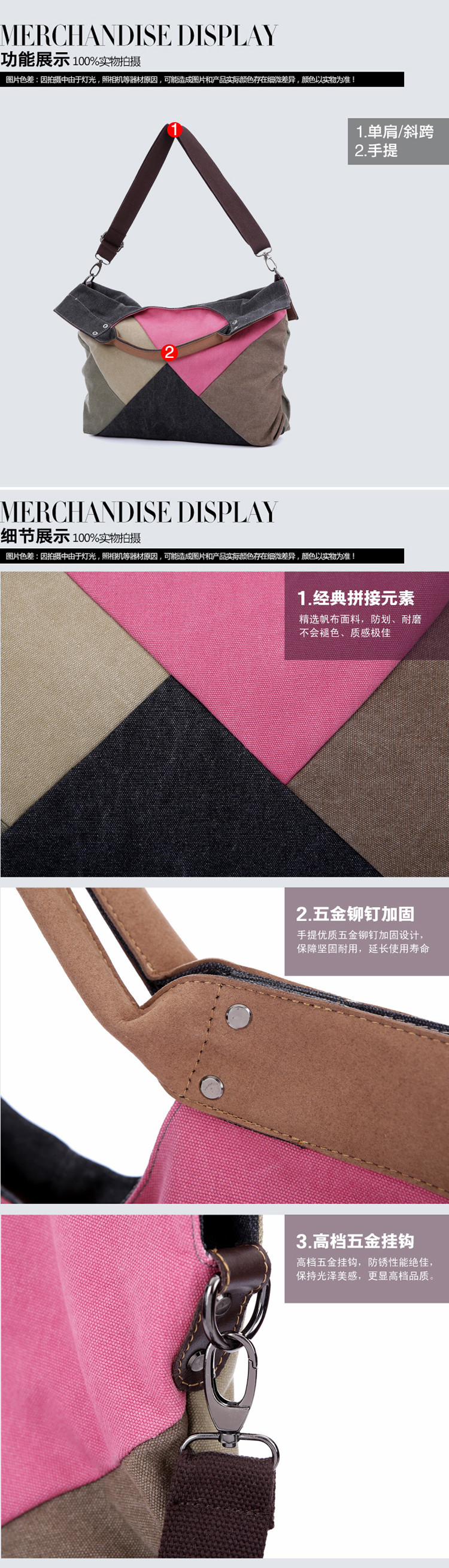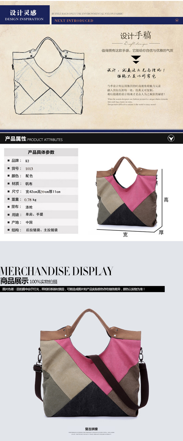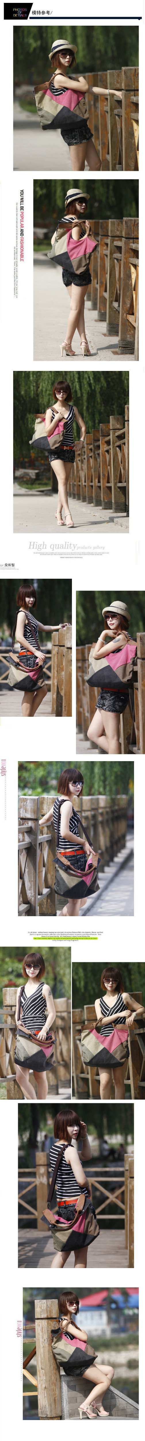 Fashion patchwork canvas bag handbag women’s handbag 2014 women’s shoulder bag messenger bag free shipping K1013