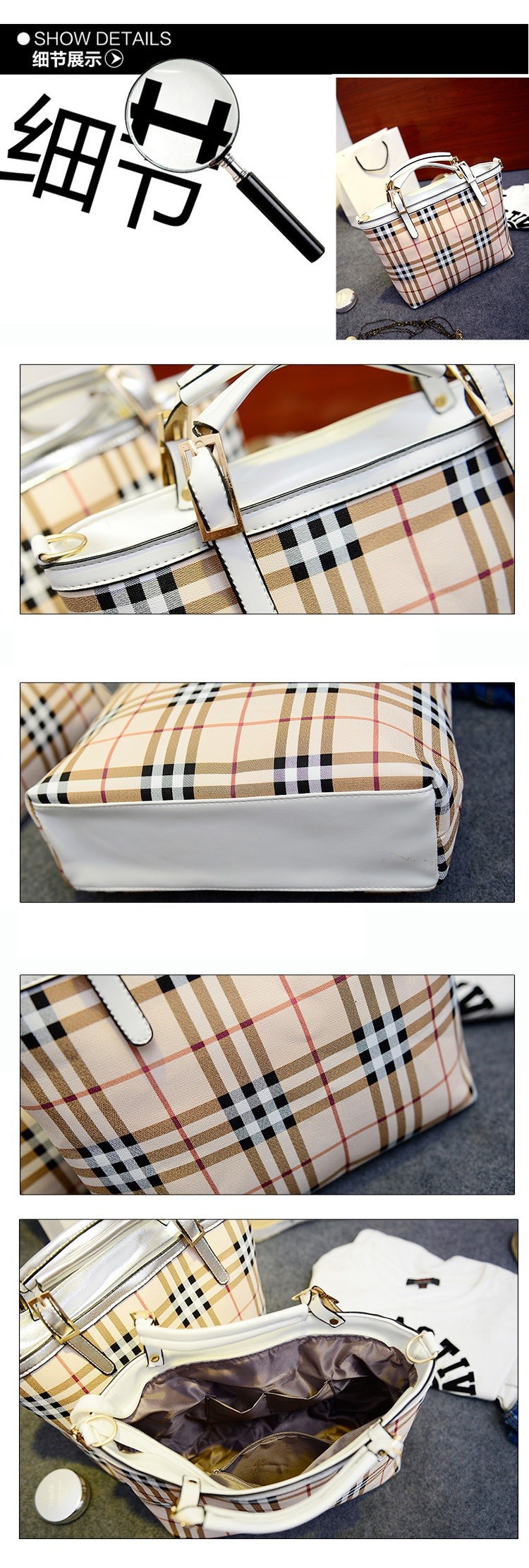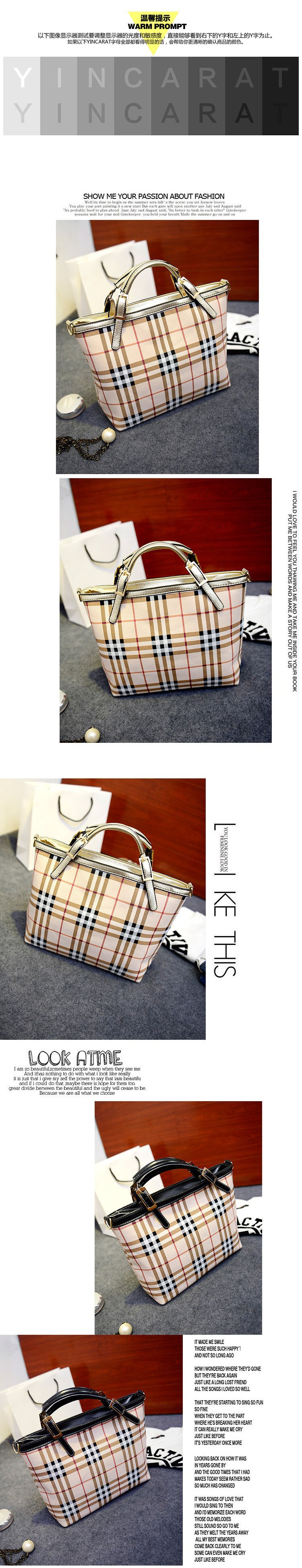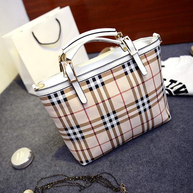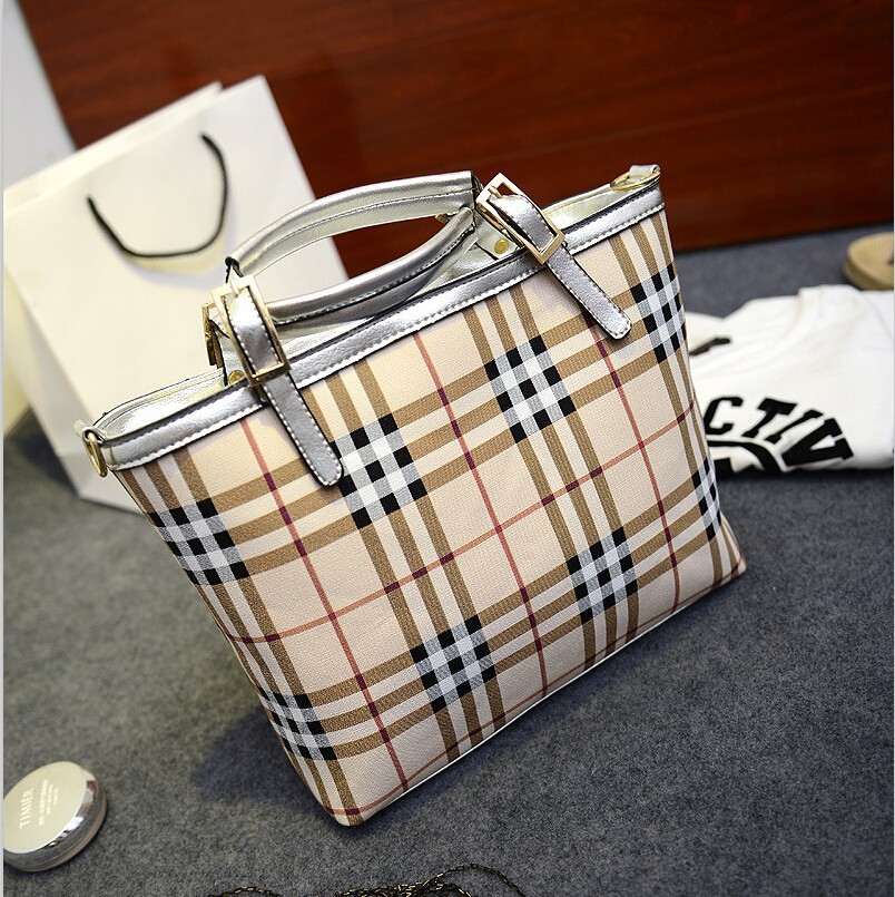 Fashion PU leather plaid women handbags 2014 tote bag British style brand girls shoulder bags Women’s Totes woman bolsa channel