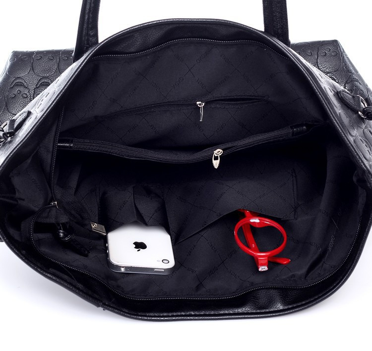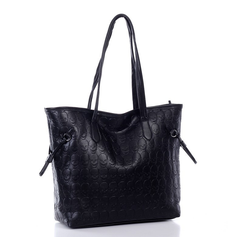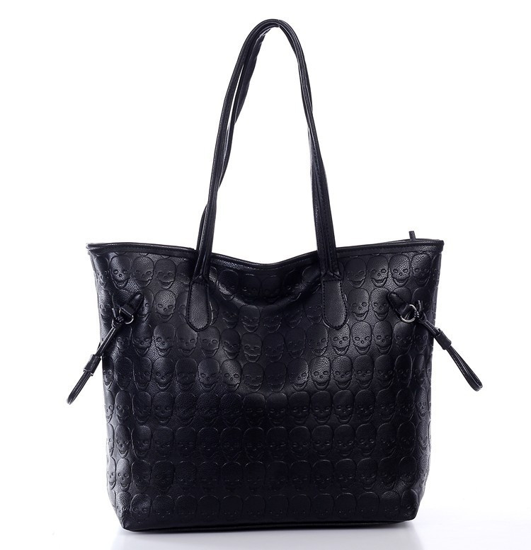 Fashion PU leather women big size messenger bag 2014 cool black skull women handbag large size