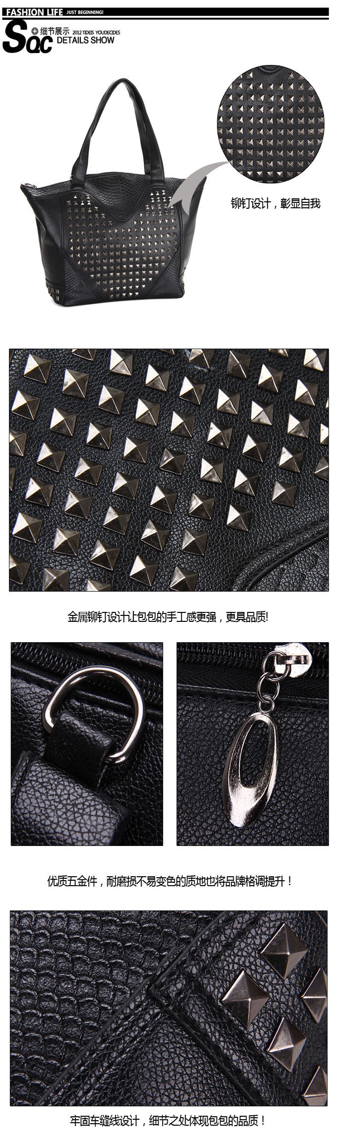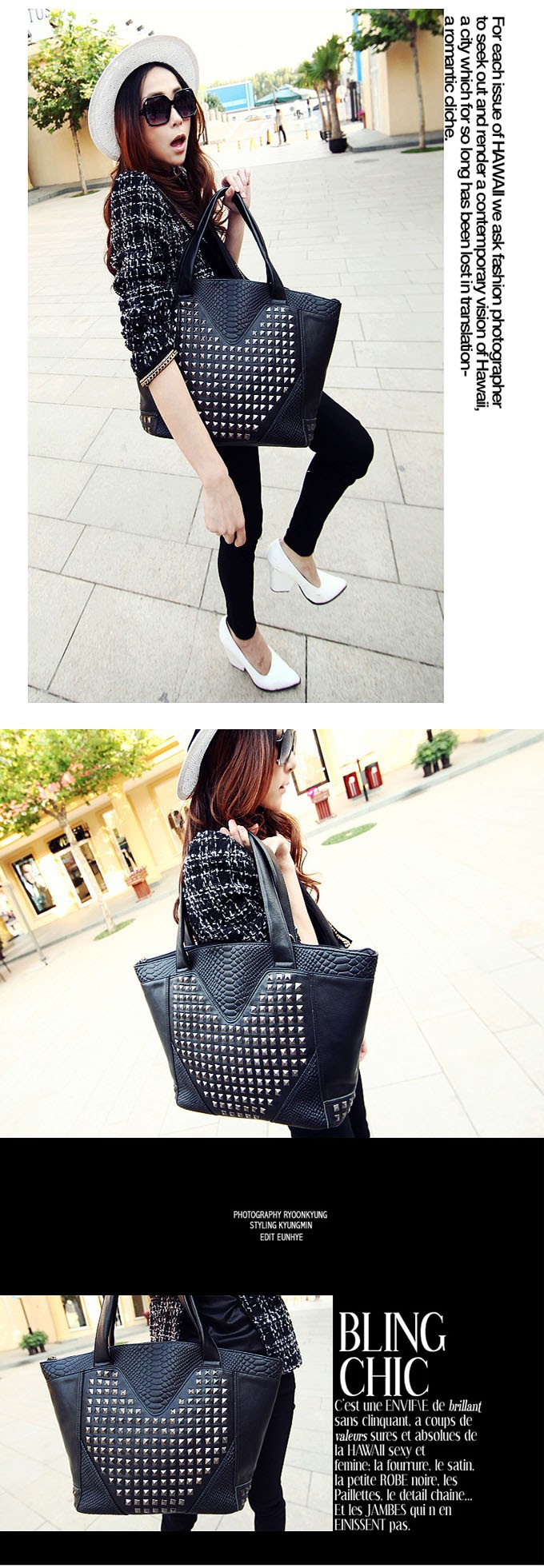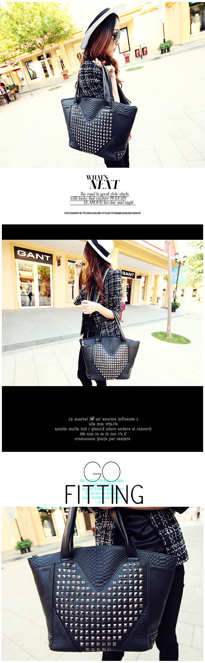 Fashion New Hotsale Hot!! Crocodile Pattern Rivet Shoulder Bags Women’s Casual Handbag Messenger Bag Tote Bags