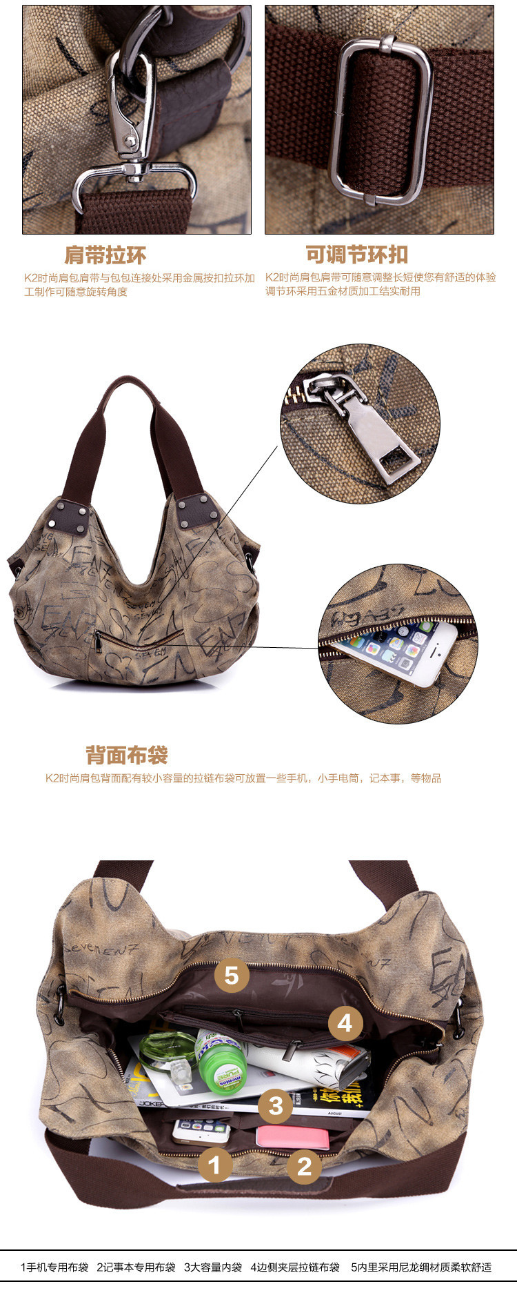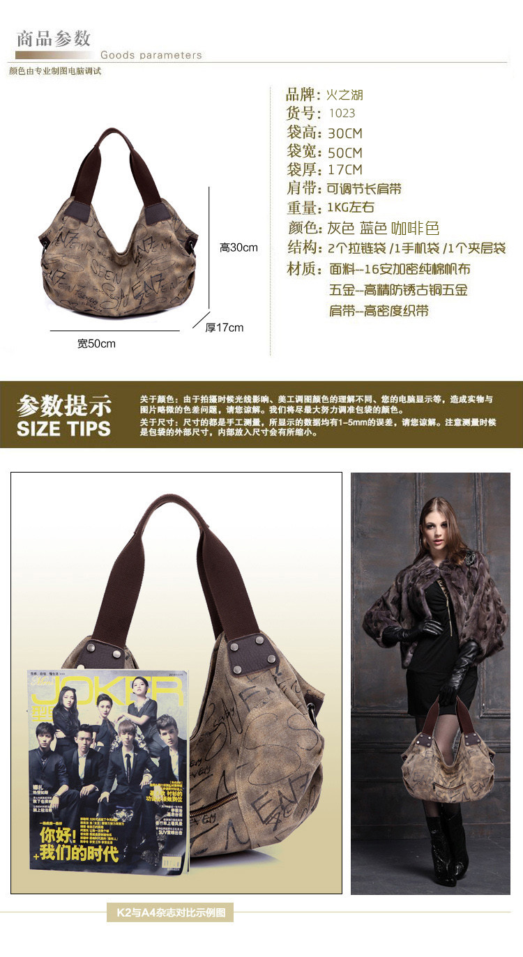 Fashioon Korean style women vintage canvas messenger bag shoulder school bags 1023