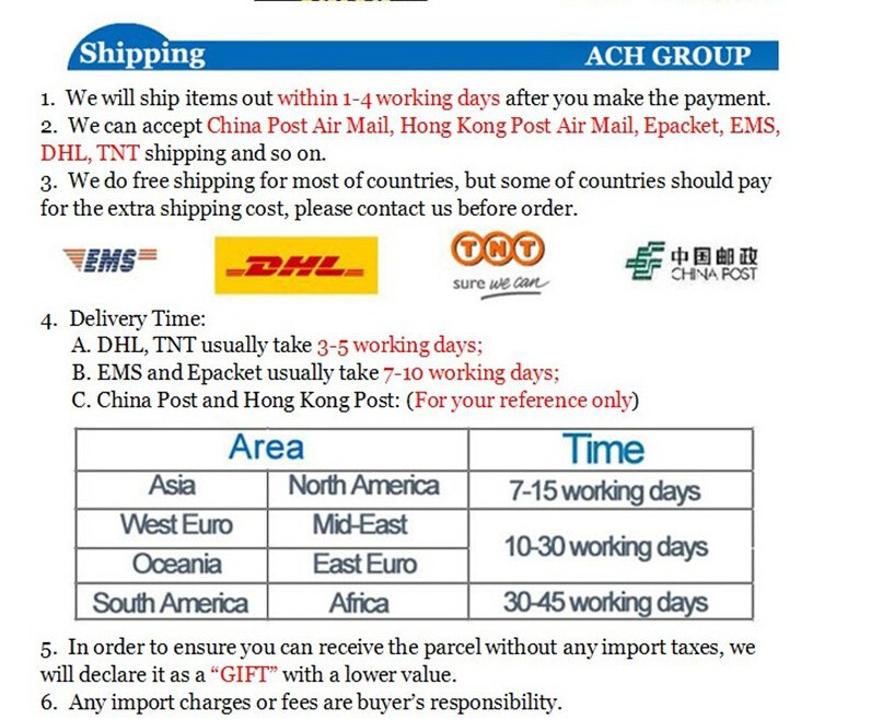 Seller ServiceOn-time DeliveryIf you do not receive your purchase within 60 days, you can ask for a full refund before order completion (when you click "Confirm Order Received" or exceed confirmation timeframe).