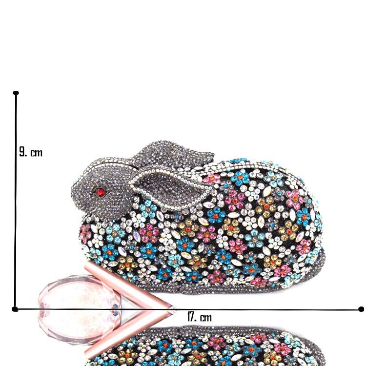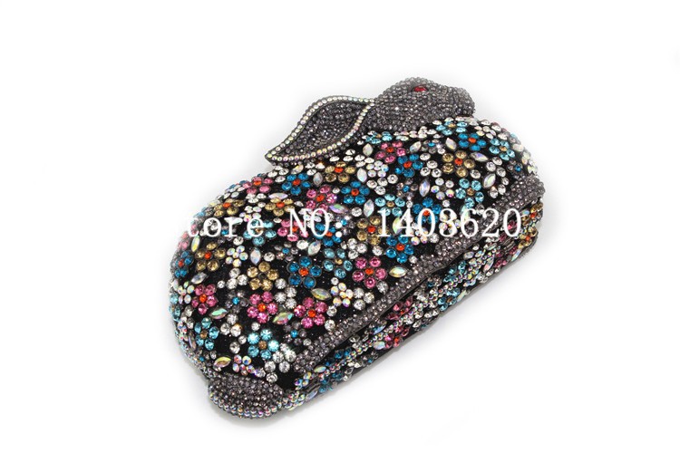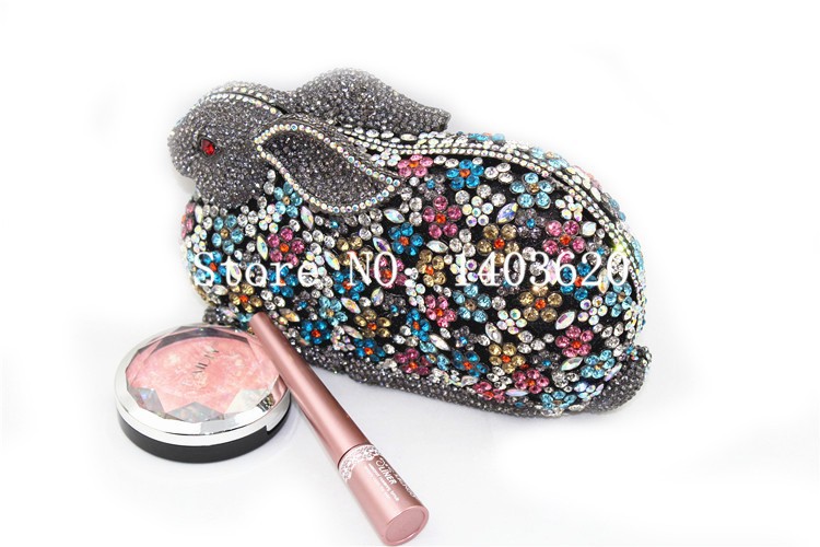 Fine upscale 3D shaped rabbit Mix Crystals Bunny clutch – cocktail party handbag evening hollow out clutch Evening Purse Bag