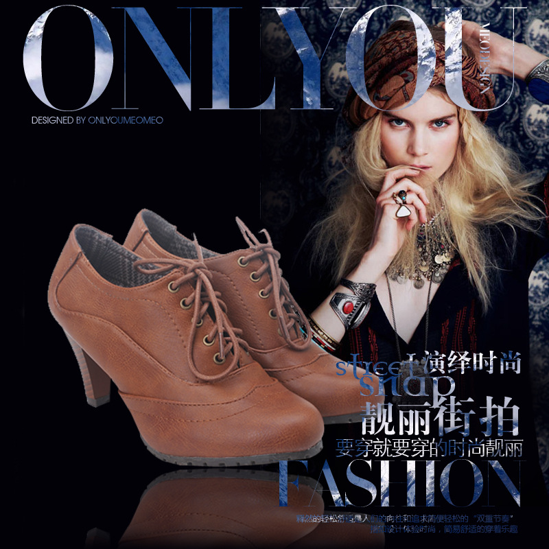 Foreign trade of the original single autumn models with high-heeled shoes thick bandage round deep mouth shoes