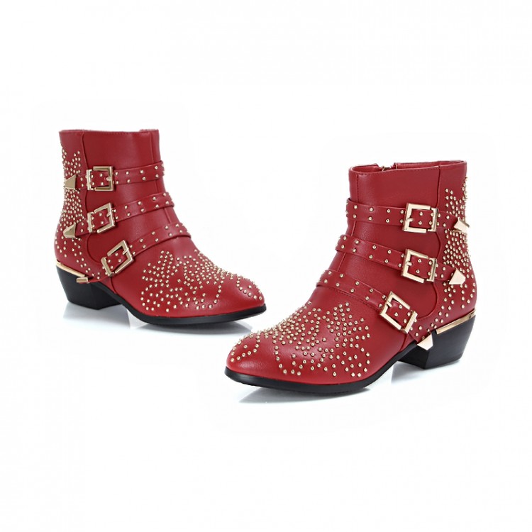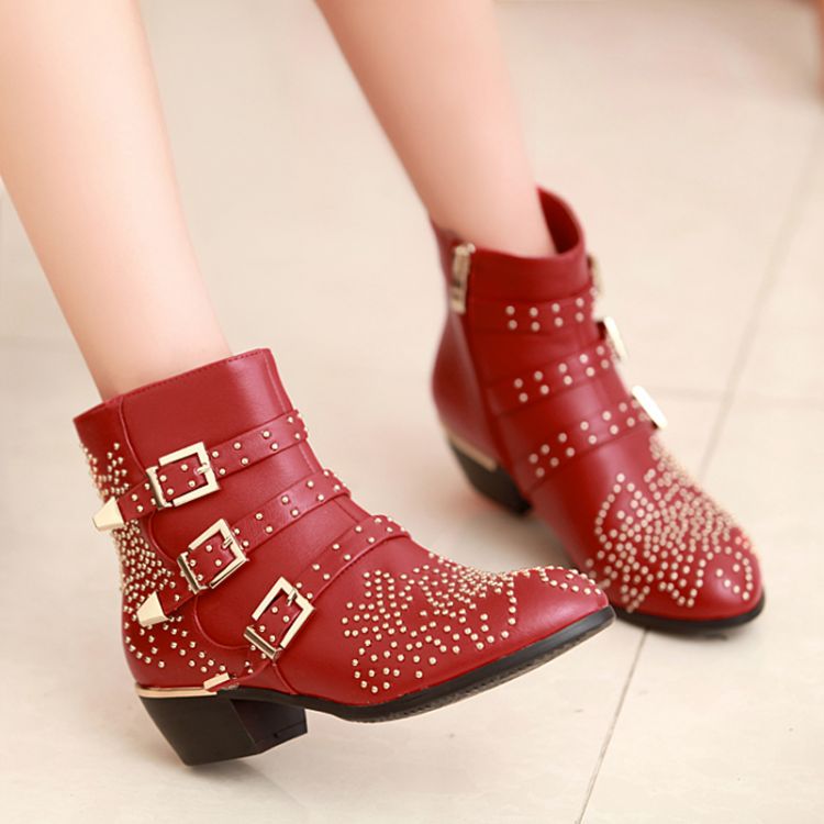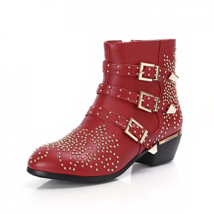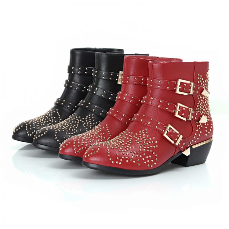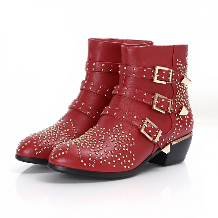 Free EMS DHL women Boots female 2015 new real leather susanna studded ankle booties women shoes boots black red