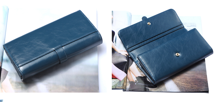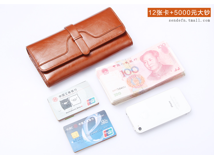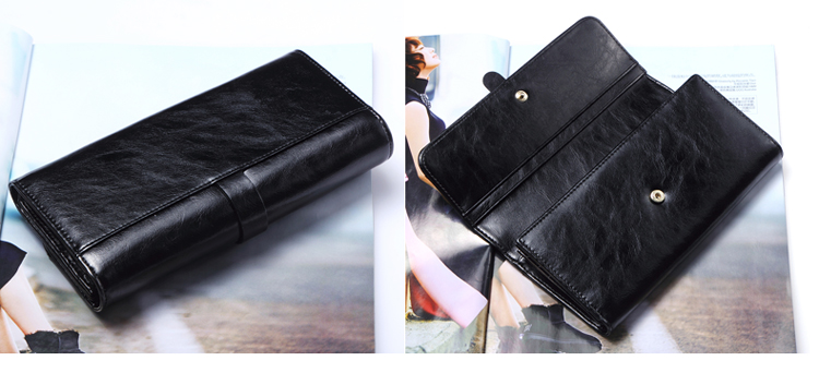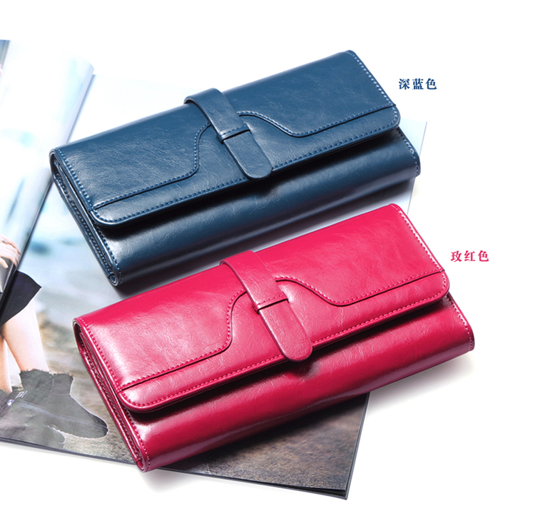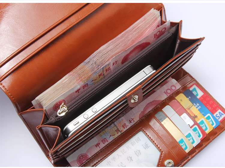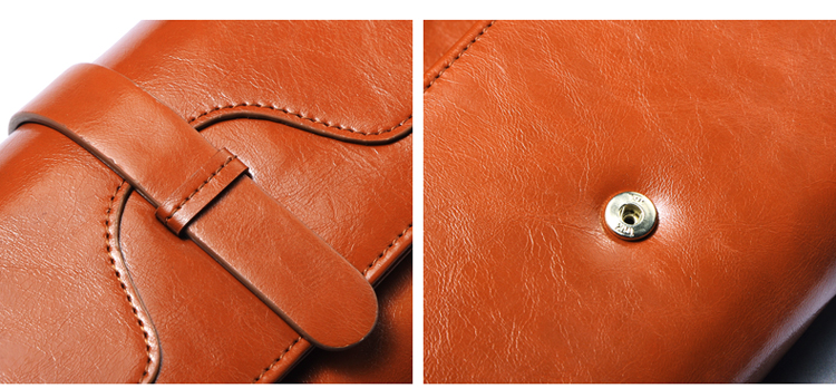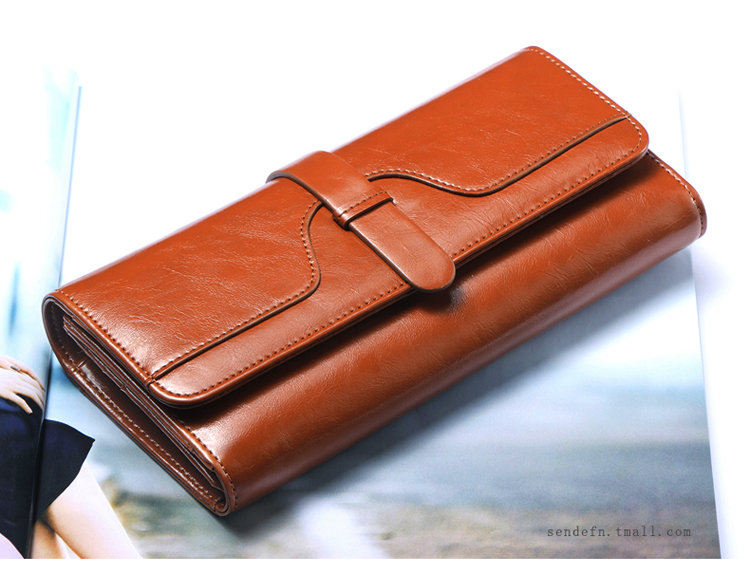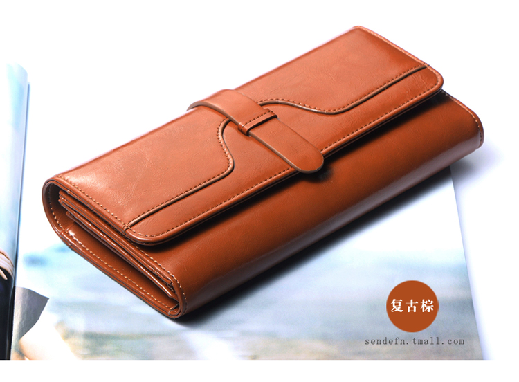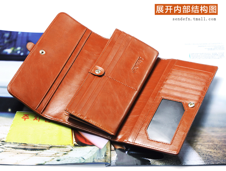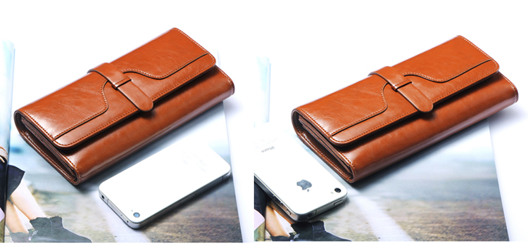 NEW 2014 Women brand long style leather fold zipper snaps oil wax leather clutch wallet phones free shipping