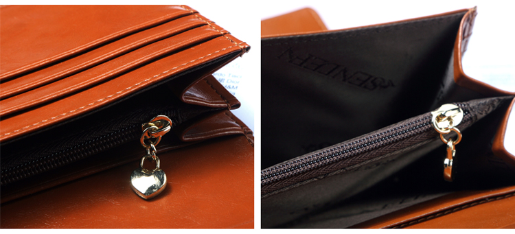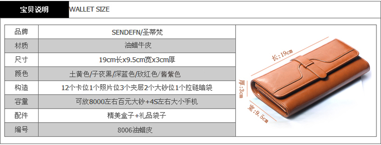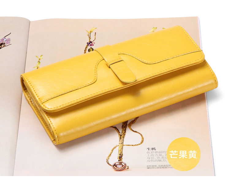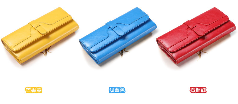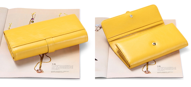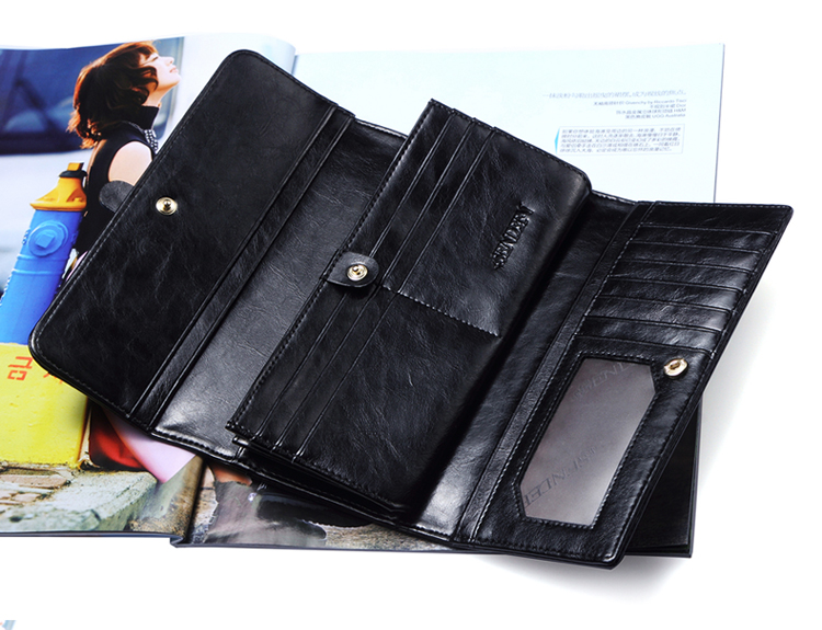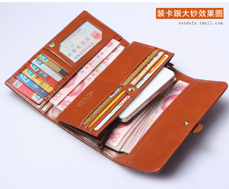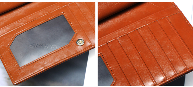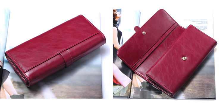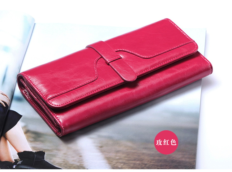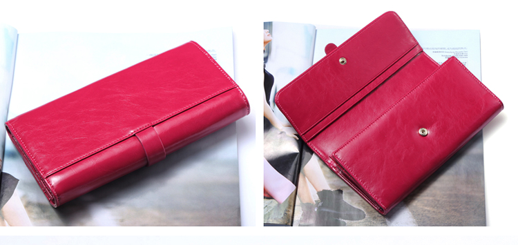 NEW 2014 Women brand long style leather fold zipper snaps oil wax leather clutch wallet phones free shipping