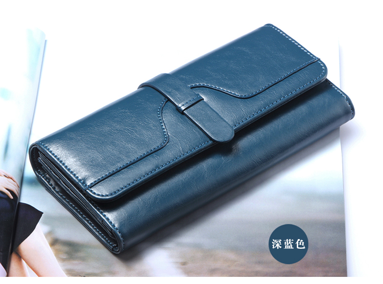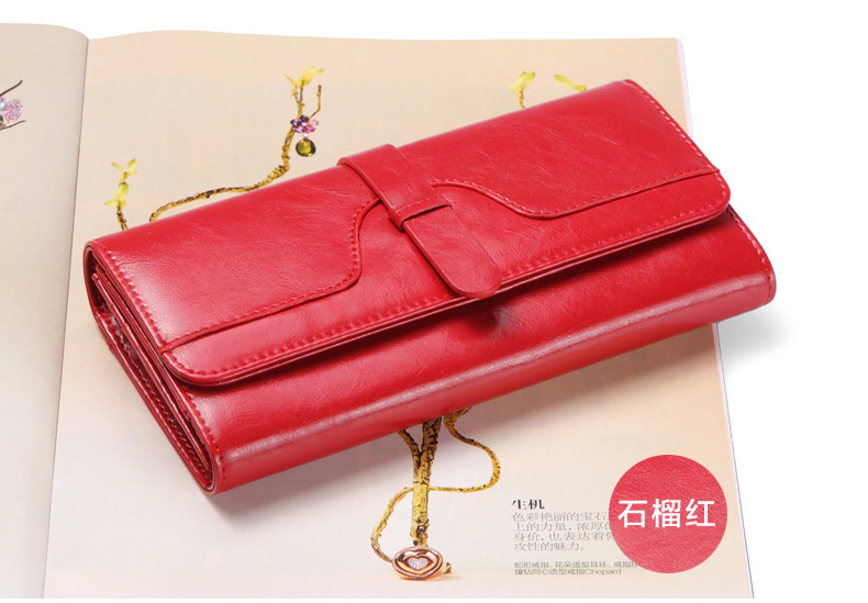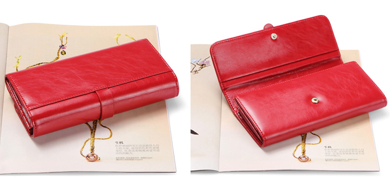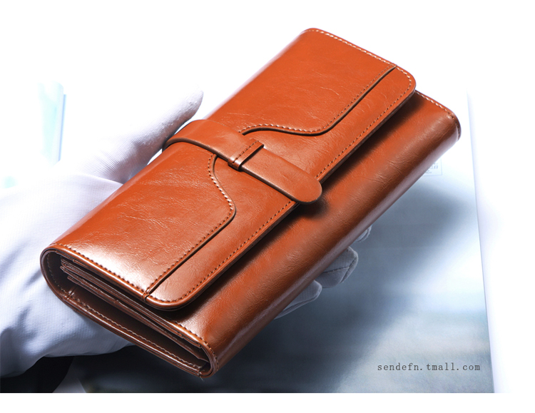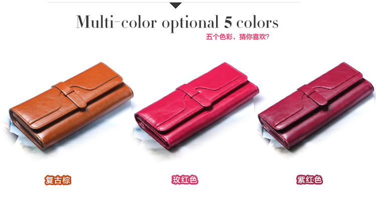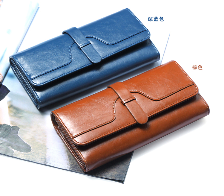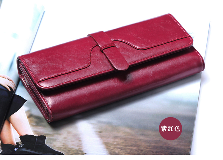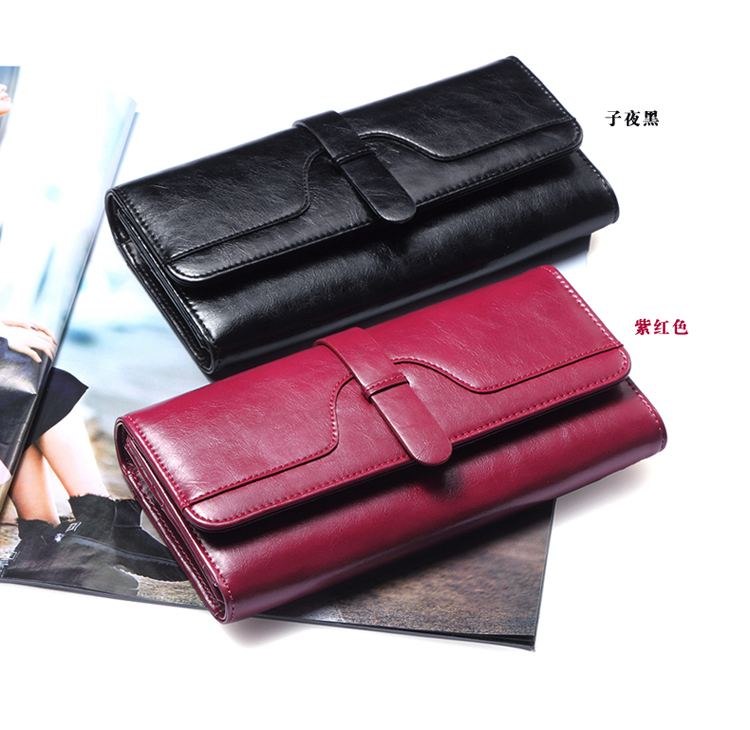 Free shipping —100% oil waxing cowhide wallet for women Long designer drew-string wallet holder women leather genuine purse