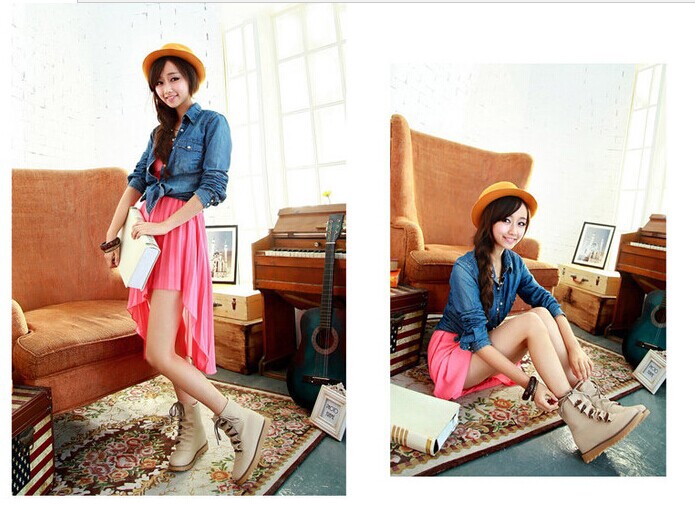 Free shipping 2014 Autumn winter woman cool uniform fashion boots size flat Motorcycle boots shoes woman snow boots