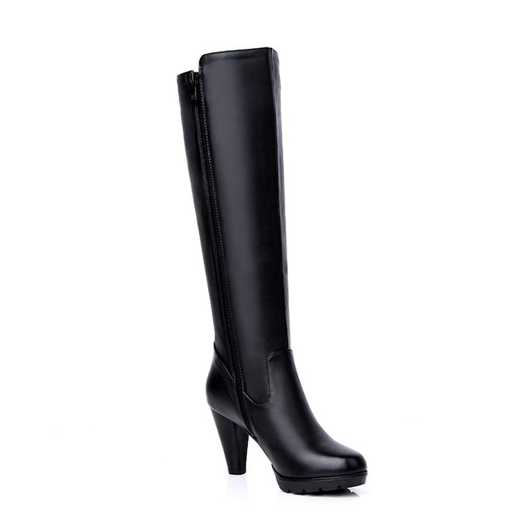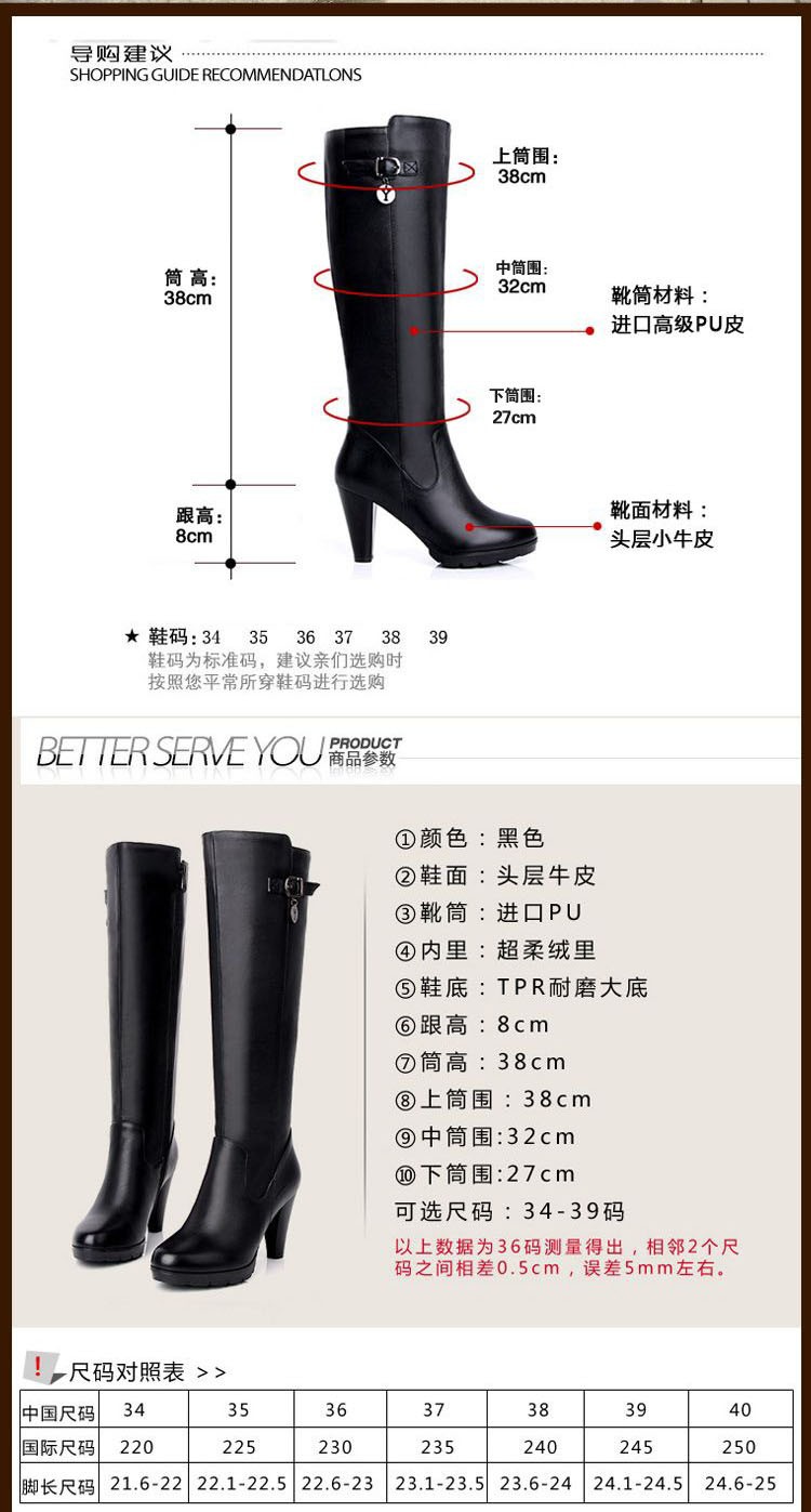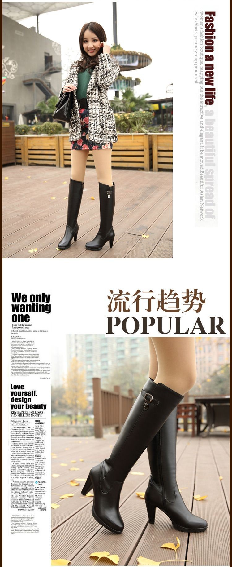 Free Shipping 2014 Fashion Genuine leather knee high equestrian boots winter platform thick heel high heel boots for women