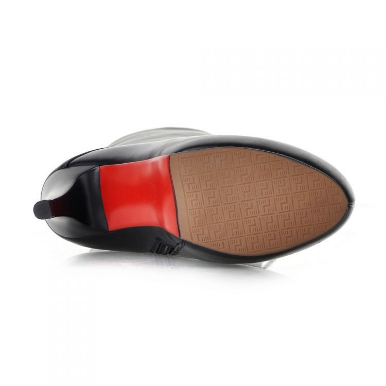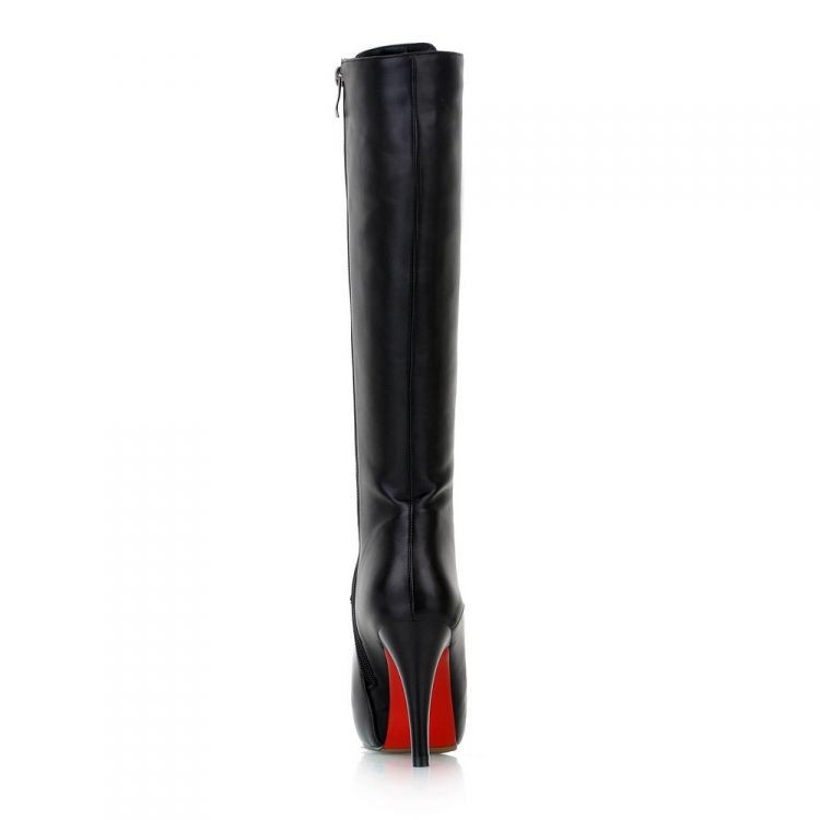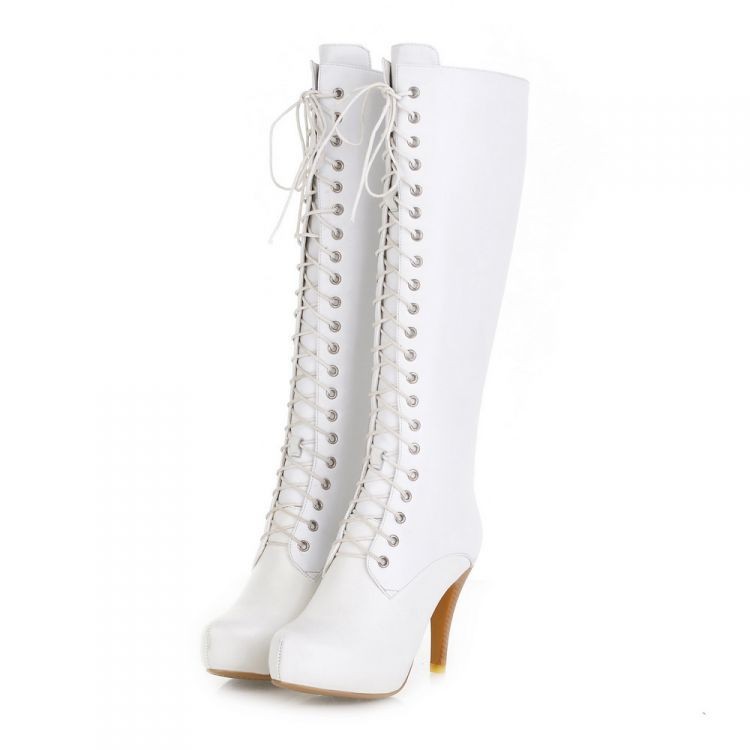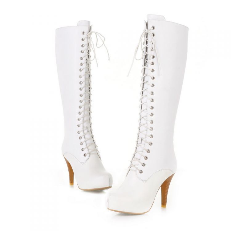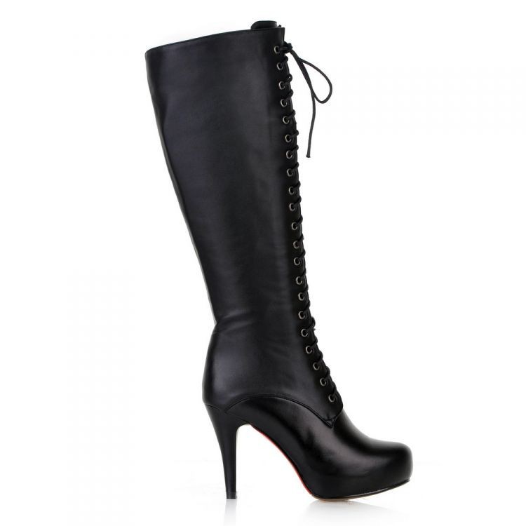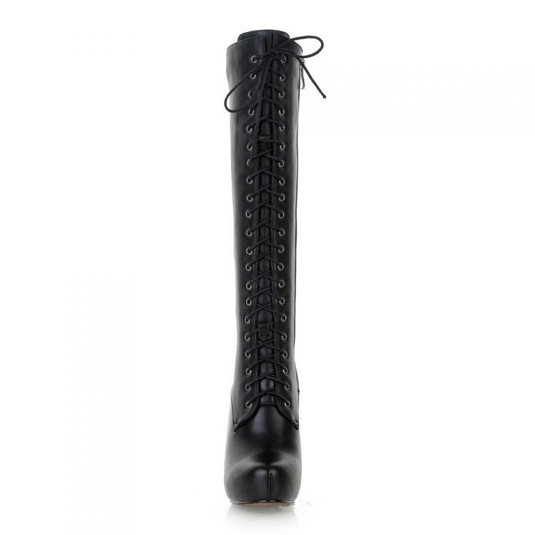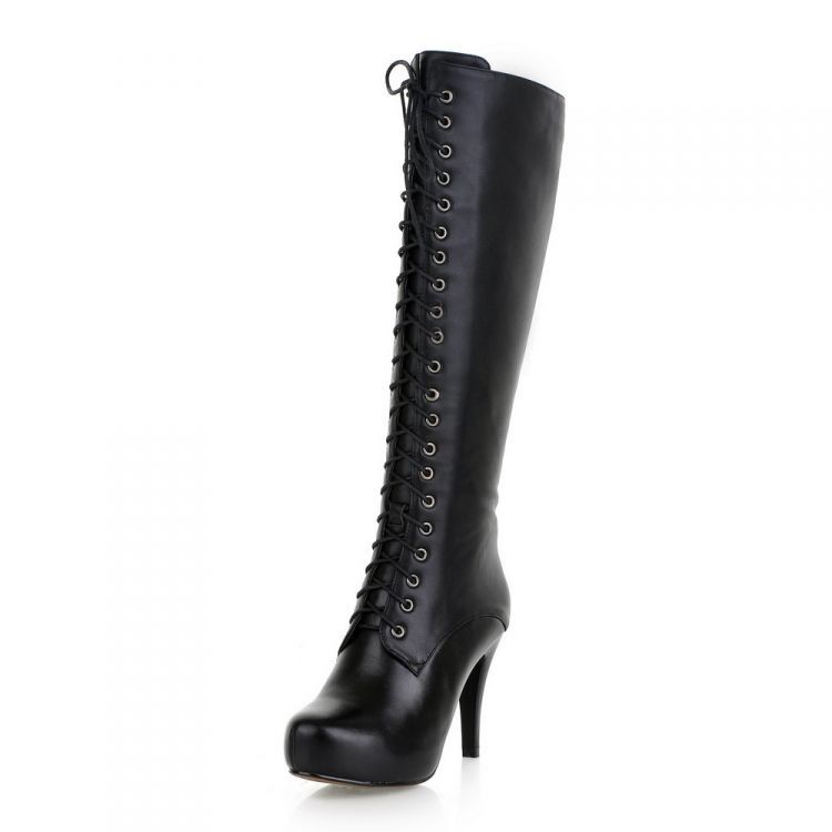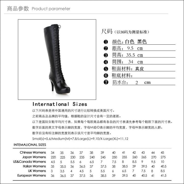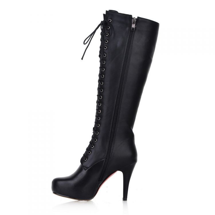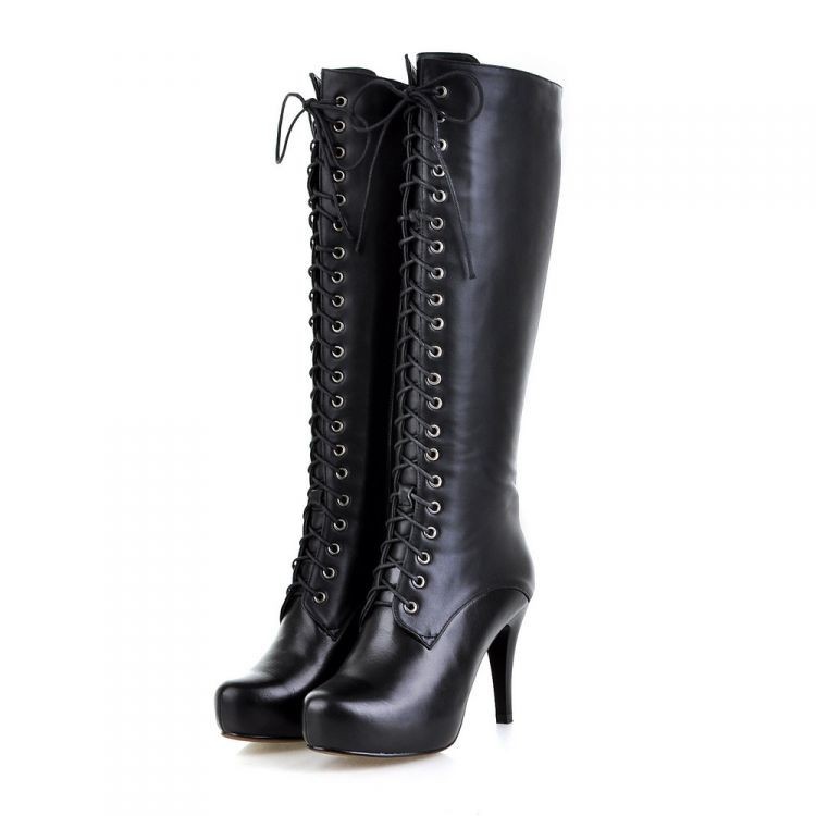 Free Shipping 2014 Fashion Genuine leather Motorcycle Boots 9.5cm thin heels Platform Lace-pu Women Knee-high boots size:33-43