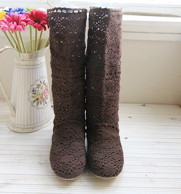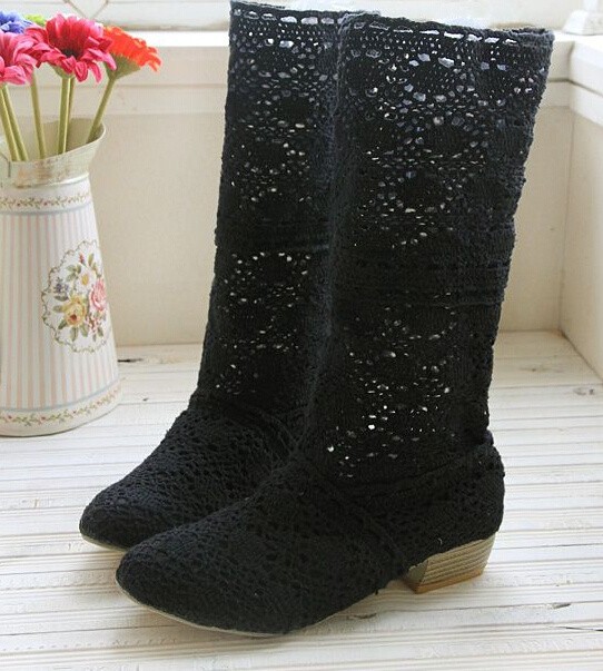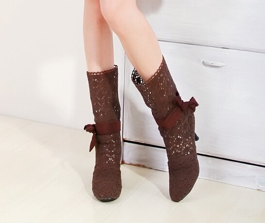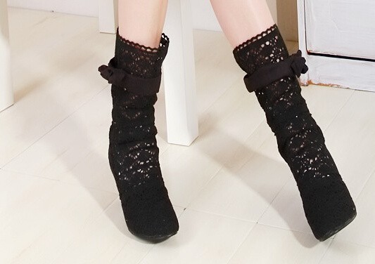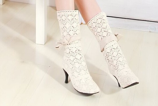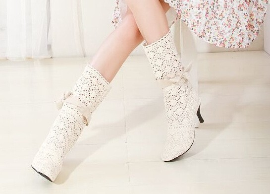 Free shipping 2014 Fashion Women Cutout Knitted Summer Cool Straight Female Bow Stiletto Boots Top Quality Women Shoes