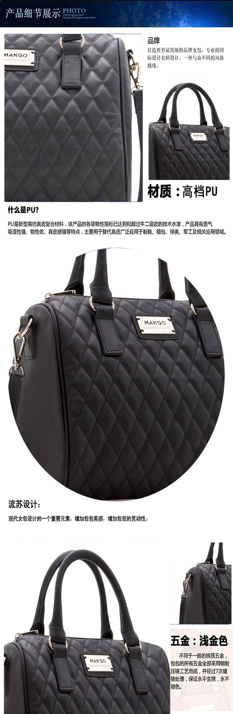 Free Shipping 2014 Hot fashion black PU leather women handbags classic plaid bag MANGO bag female messenger bags women handbag