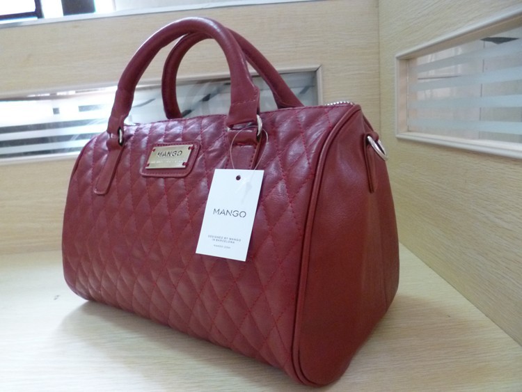 Free Shipping 2014 Hot fashion black PU leather women handbags classic plaid bag MANGO bag female messenger bags women handbag Color:Red wine`black`white Size:Length 30cm,height 18cm,thickness 20cm Shoulder strap:Adjustable shoulder strap Weight:0.4KG