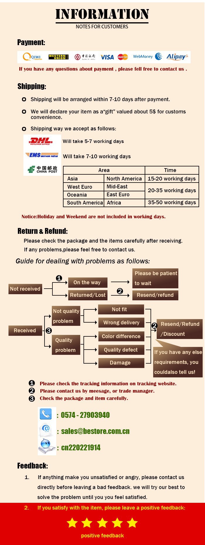 | Seller Service | On-time DeliveryIf you do not receive your purchase within 60 days, you can ask for a full refund before order completion (when you click "Confirm Order Received" or exceed confirmation timeframe). |