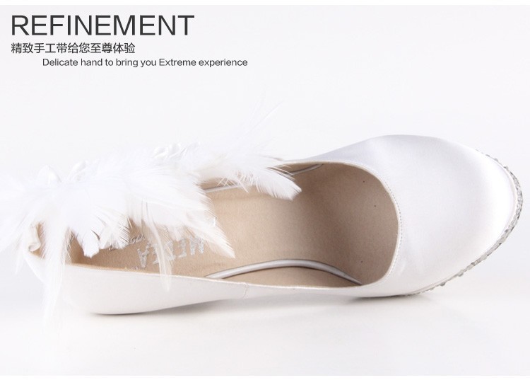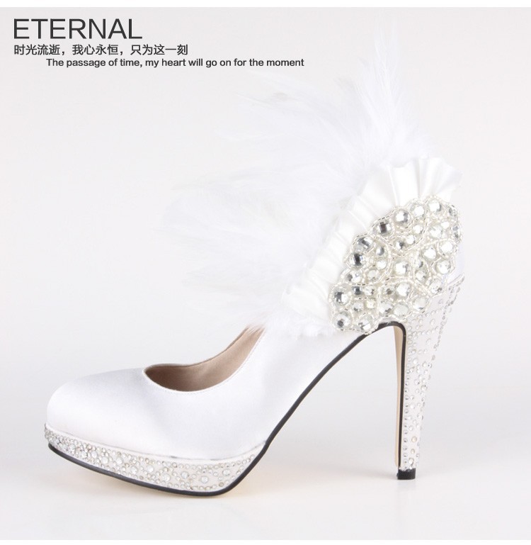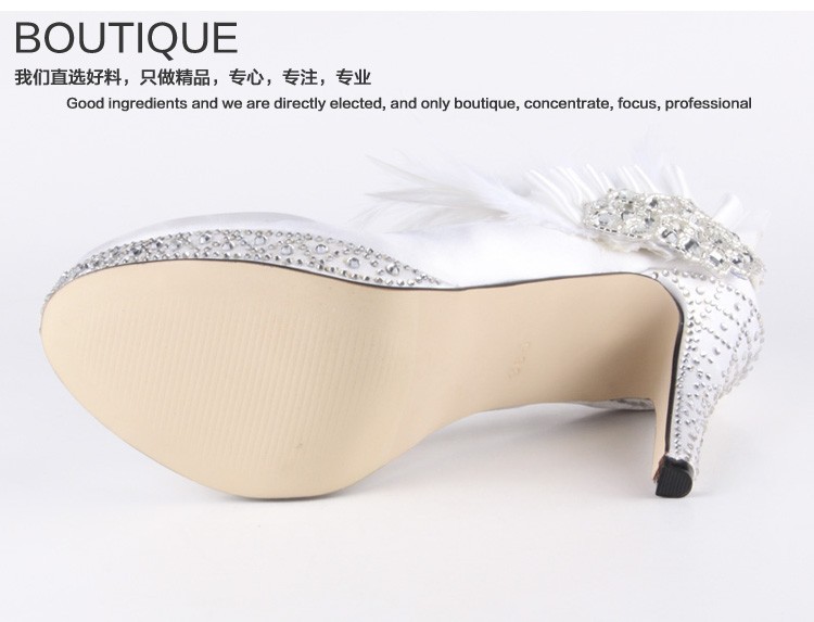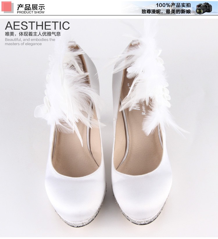 Free shipping 2014 new handmade white Feathers wedding shoes high heel crystal bridal shoes fashion rhinestone party dress shoes