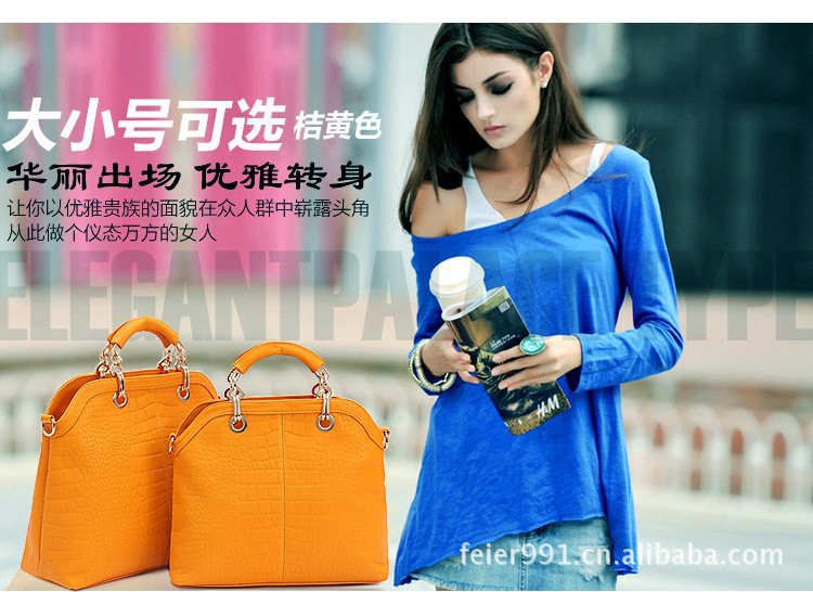 Free Shipping 2014 New Style Women’s Shoulder Bags Brief Crocodile Pattern Women PU Leather Bags 5 Color D07