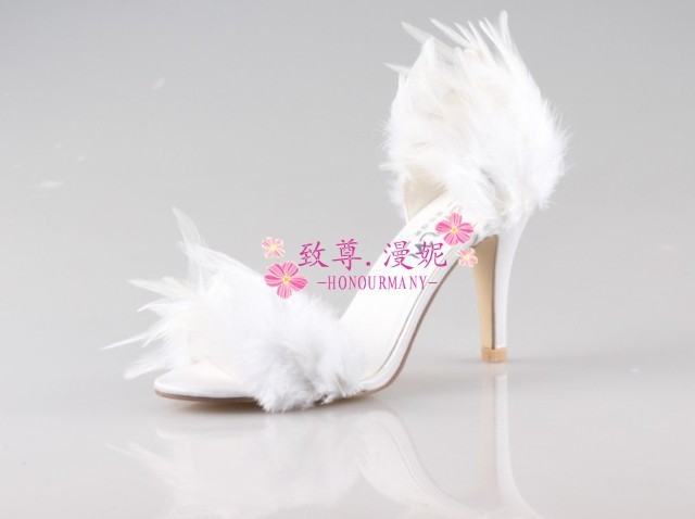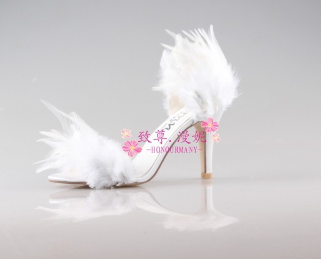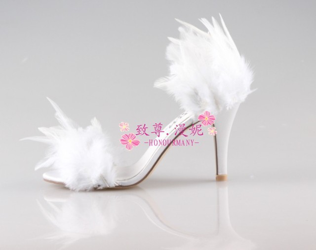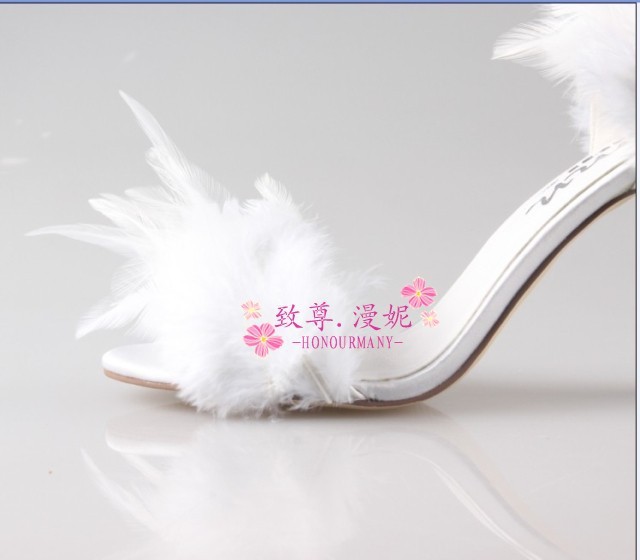 Free shipping 2014 new white Feathers sandals fashion two-piece wedding shoes bridal shoes high heel girl nightclub dress shoes