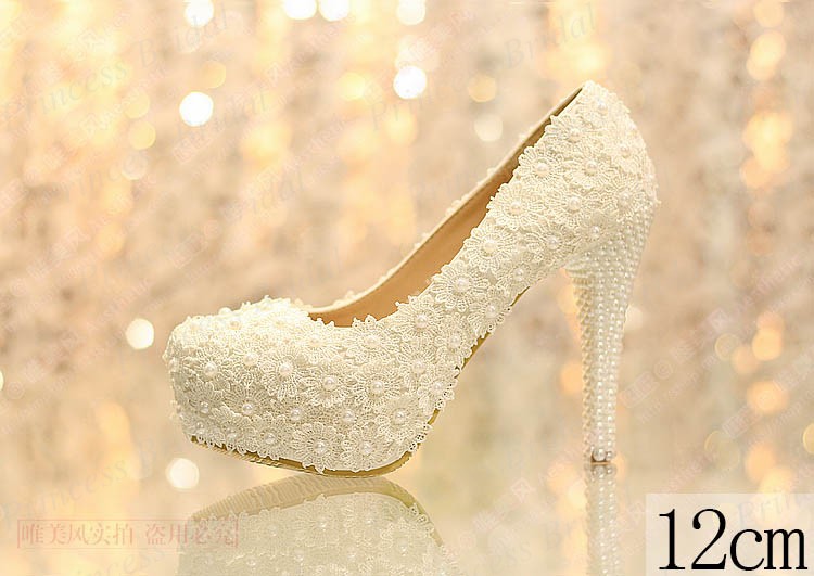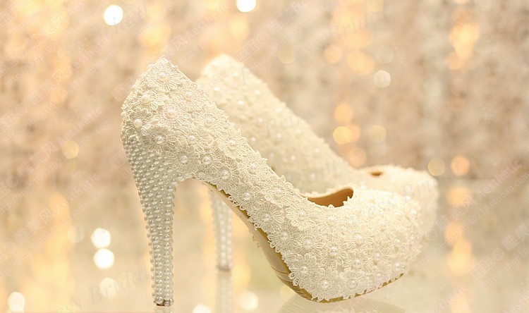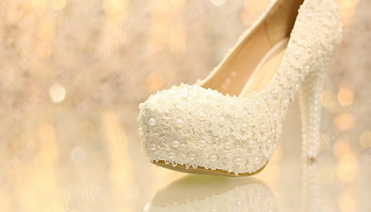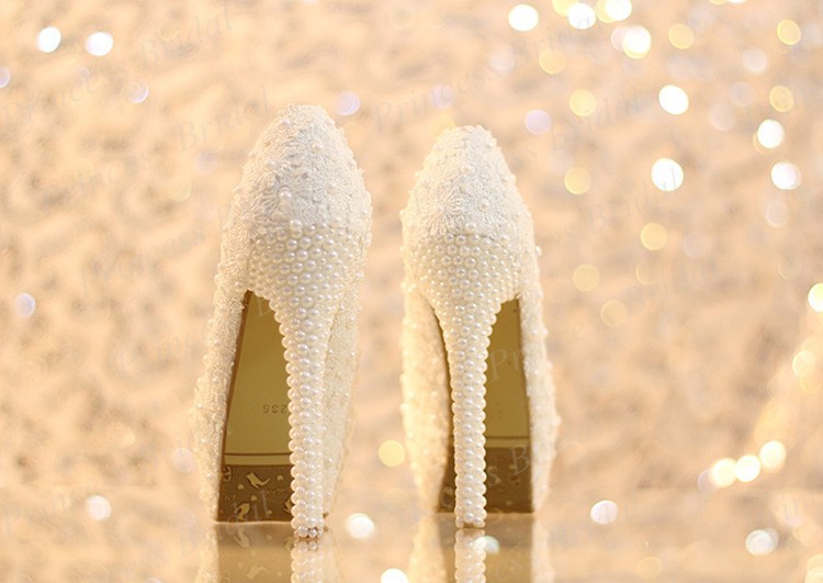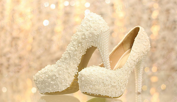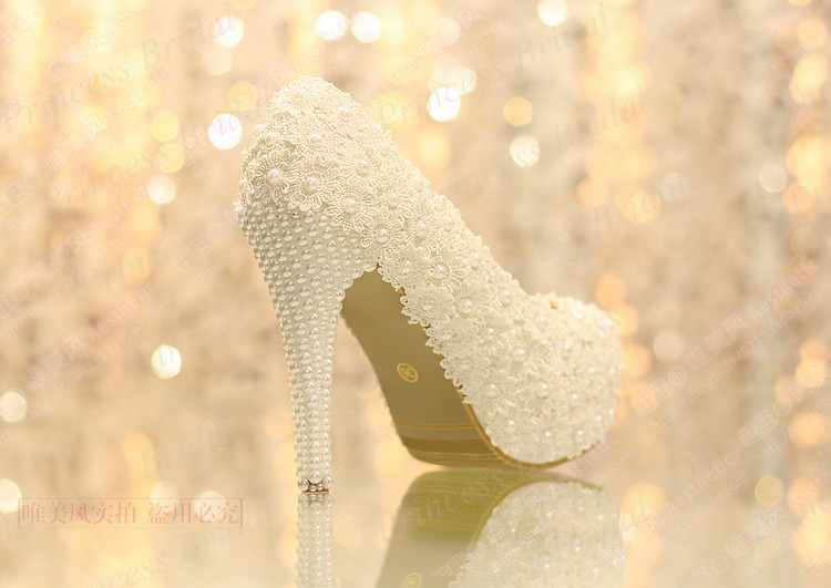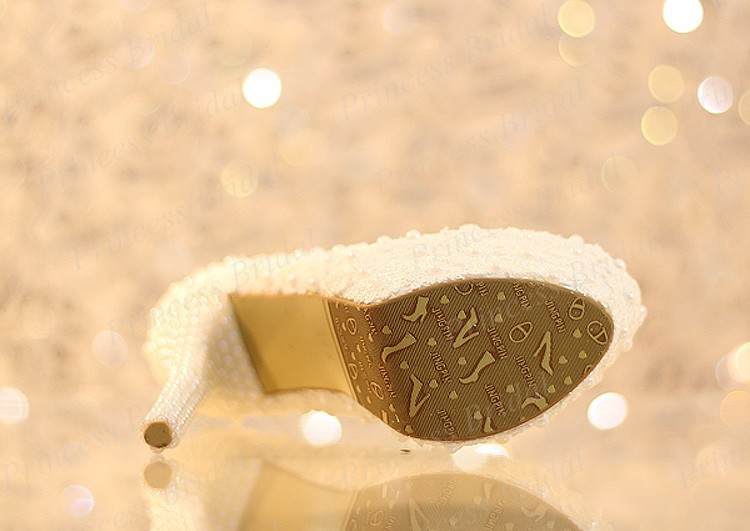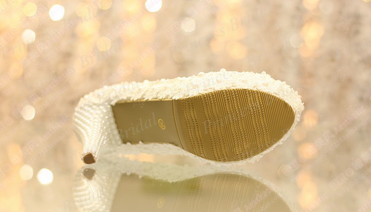 Free Shipping 2014 Newest Design Fast Shipping Pearls High Heel Women Pumps Bride Shoes For Wedding WE023