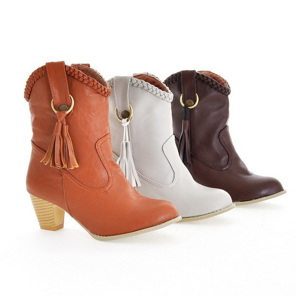Free shipping ankle boots high heel shoes 2014 fashion sexy tassel women boot leather ankle autumn boots cowboy boots size 34-43