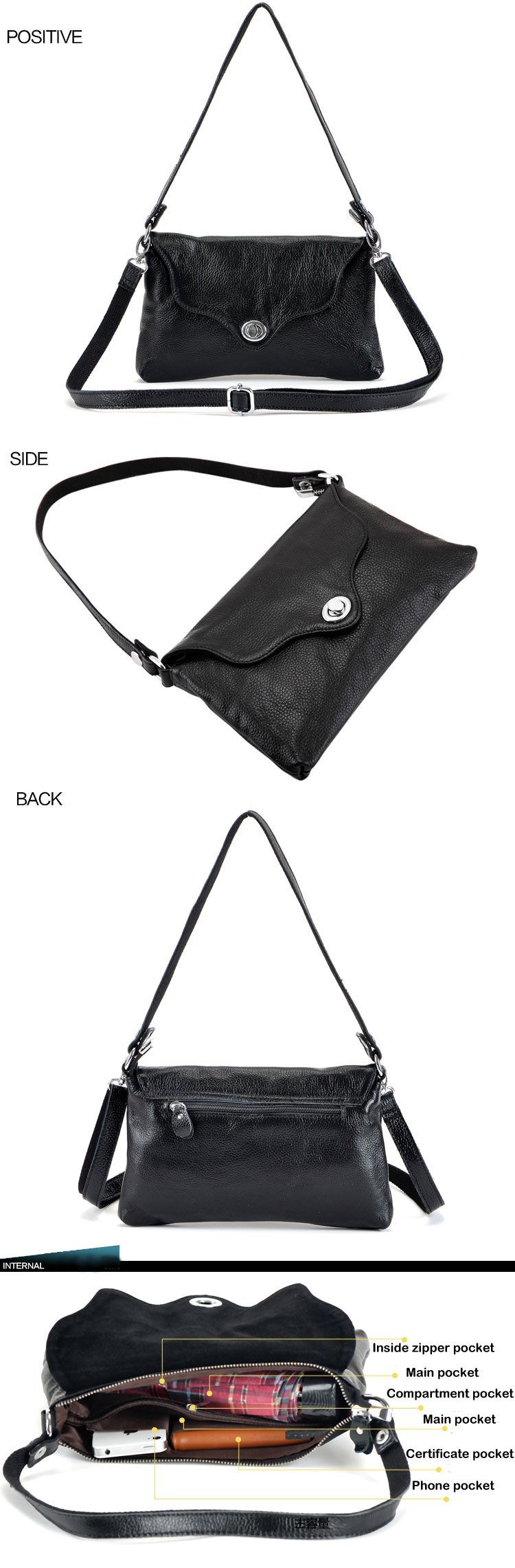 Free Shipping Black Special Fashion Lady First layer of leather Shoulder Bag Women Genuine Leather Messenger Handbag / OL-B001