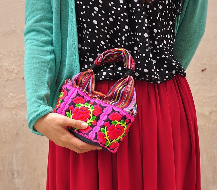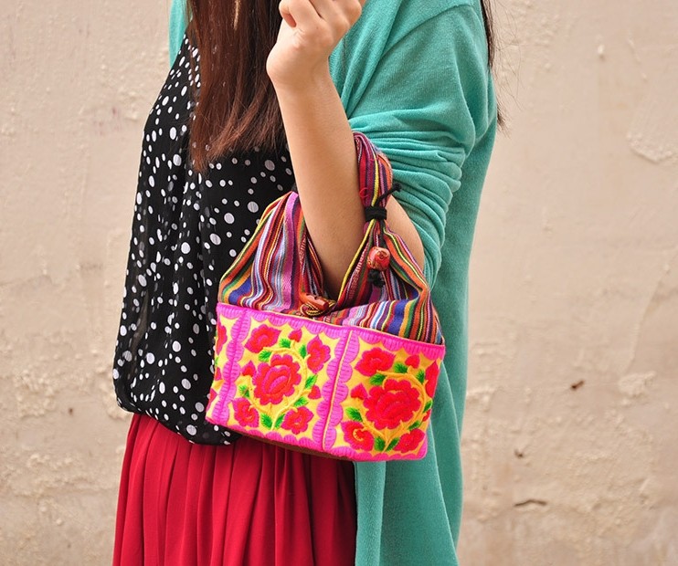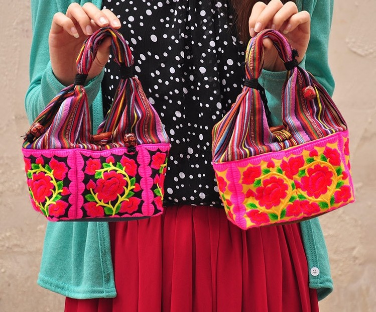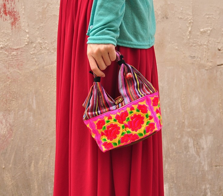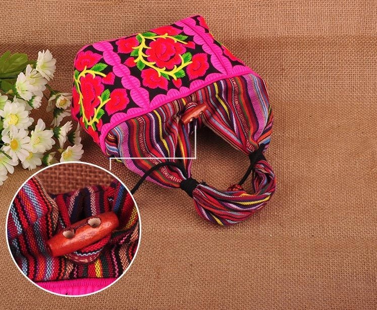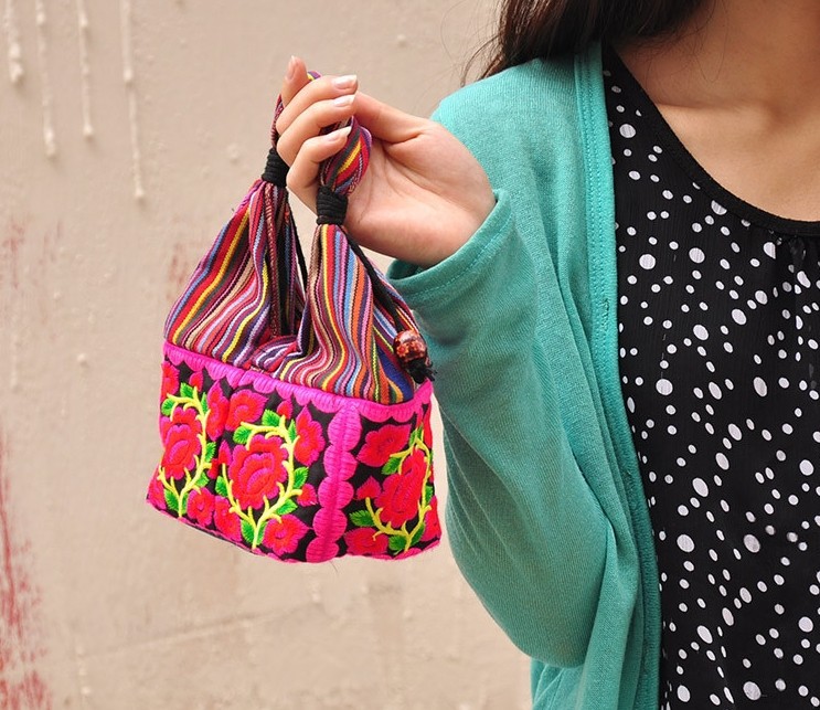 Free Shipping ! Embroidery coin purse women’s handbag cellphone bag vintage fashion key bag buggy bag with wooden button