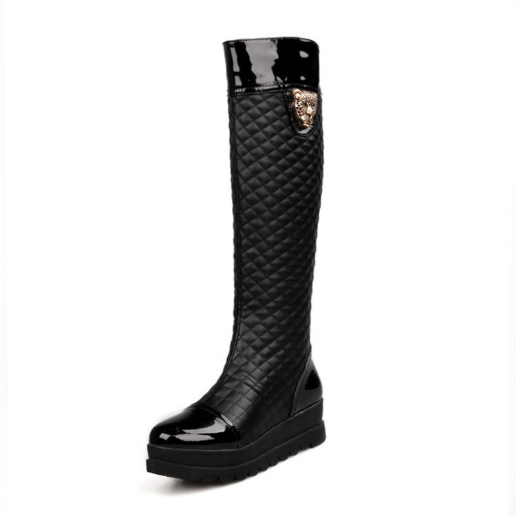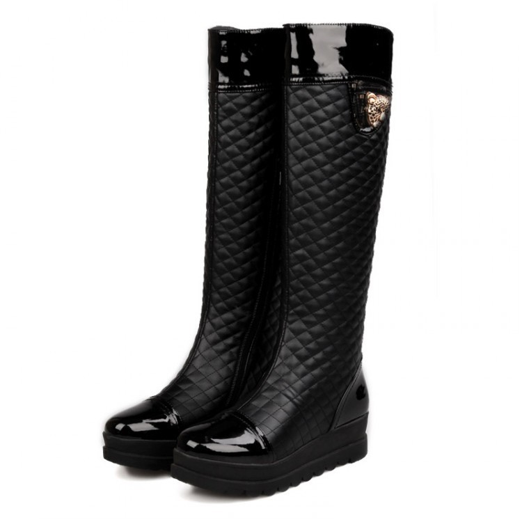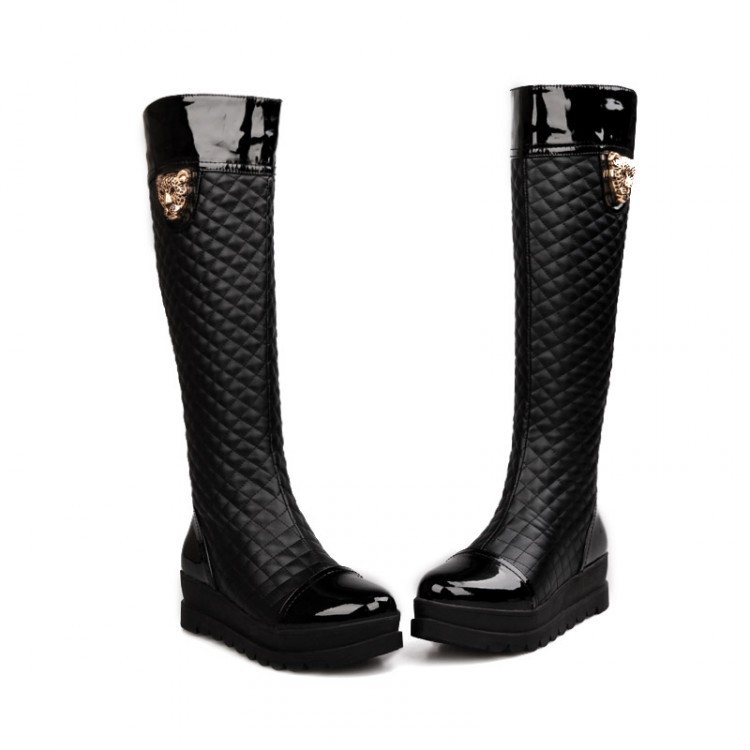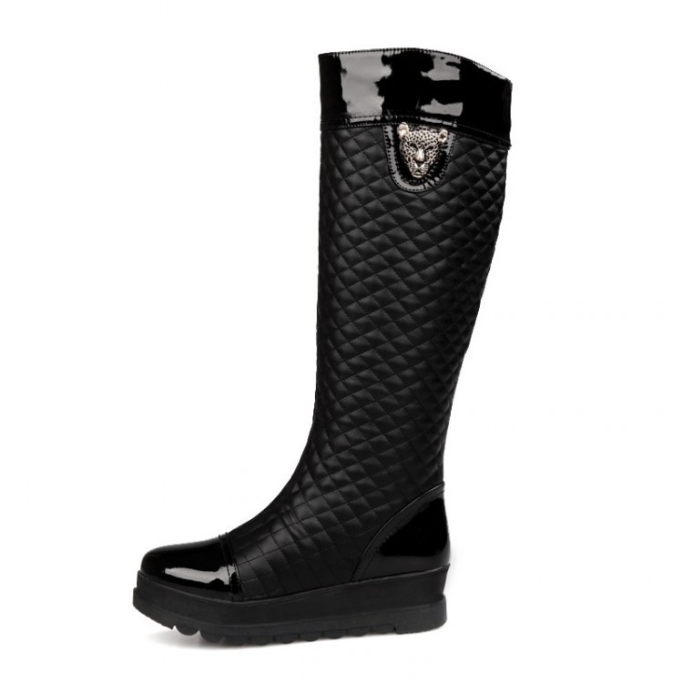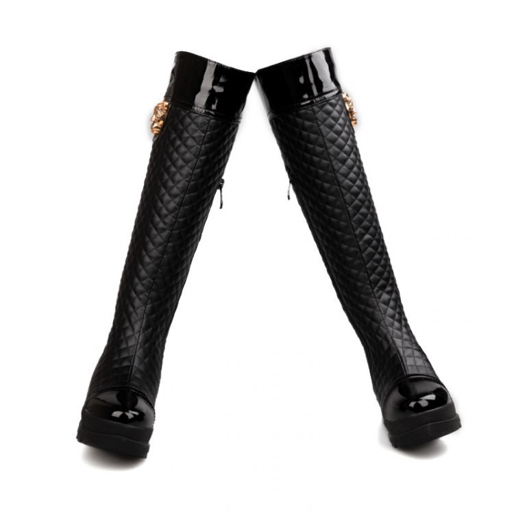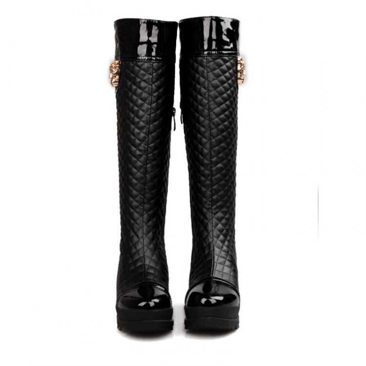 Free Shipping Fashion Women’s Genuine Leather Cool Black PUNK Military Army Knight Knee-high boots for women