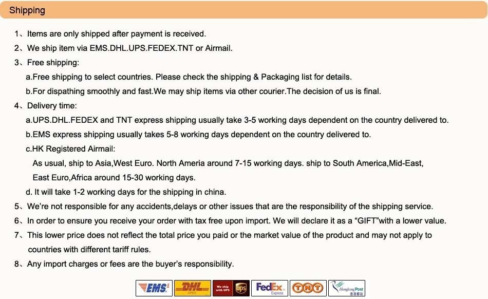 | Post Air Mail | Free Shipping | 15 - 45 days |