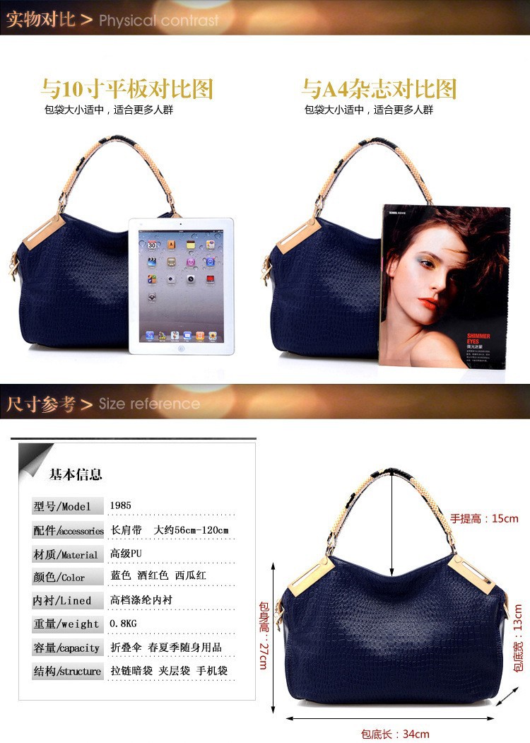 European Fashion women handbag,big size women messenger bags,crocodile Pattern luxury women bag,hot sales ladies evening bags