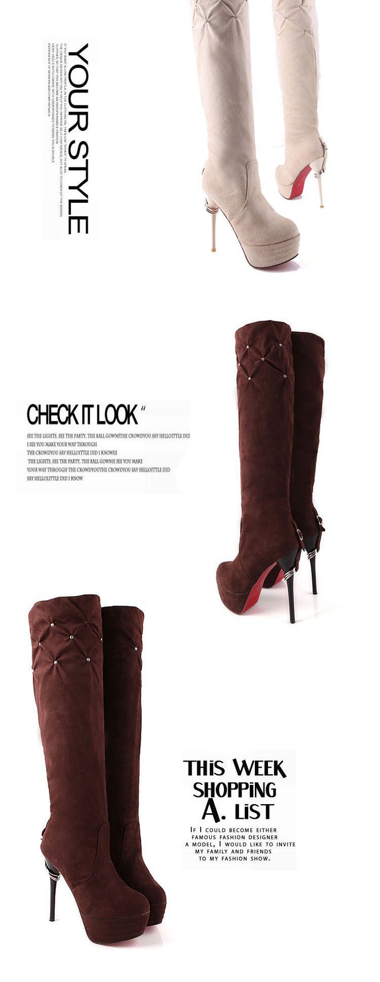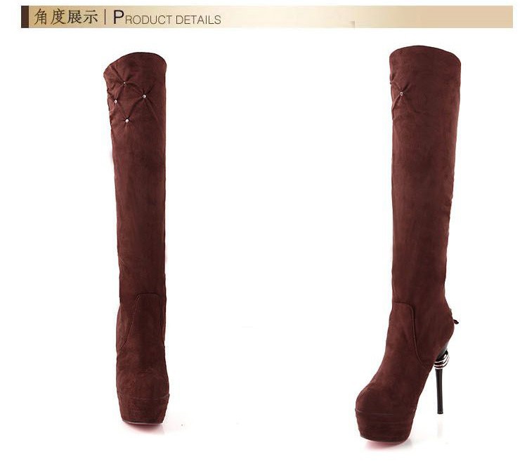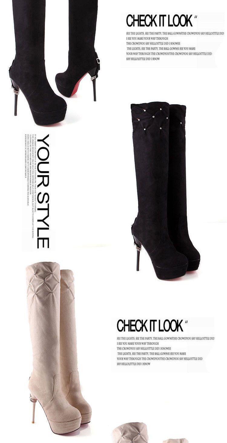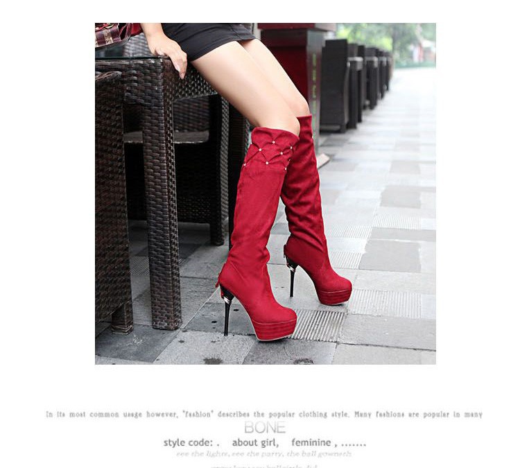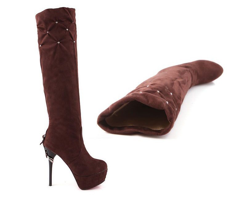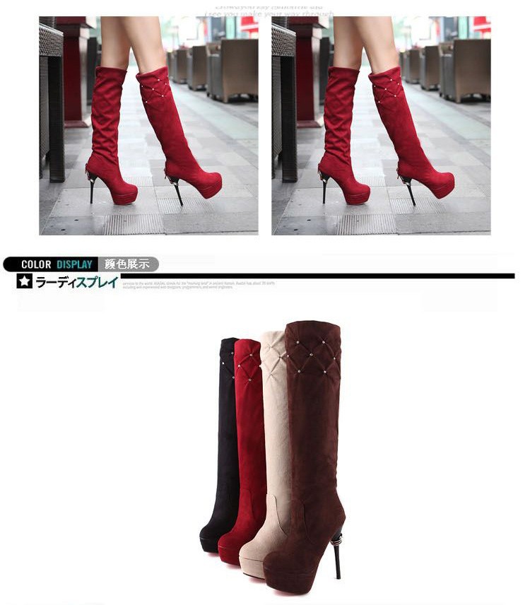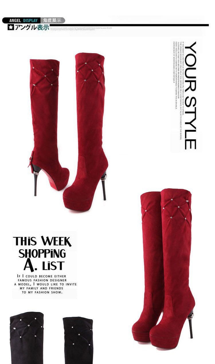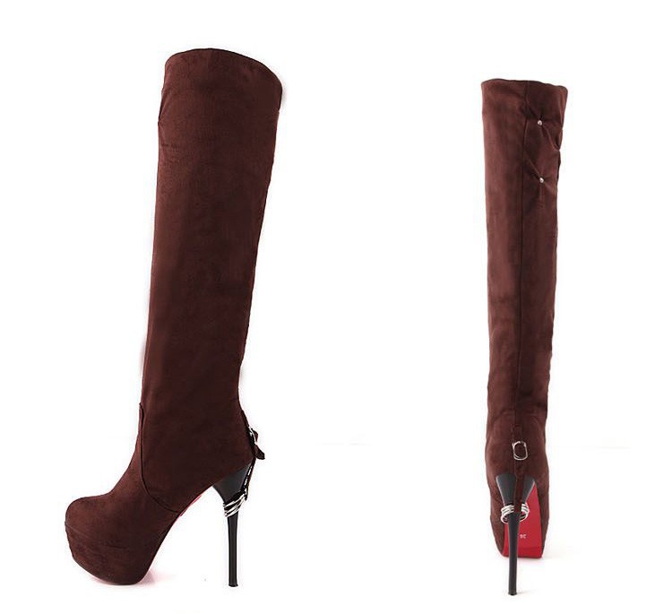 Free Shipping Leather Knee Boots Fashion red Bottom Sexy Knee-High 13cm Thin Heels Boots for women (Black, red, beige, brown)