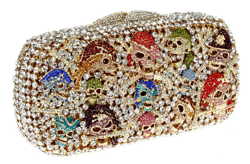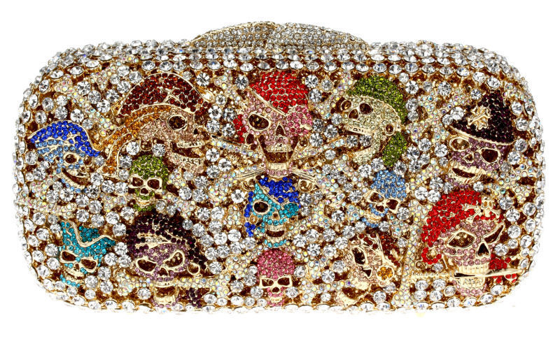 Free Shipping New 2014 Hot Sale Top Quality Women Handbags Fashion Cosmetic Bag Skulls Evening Bags