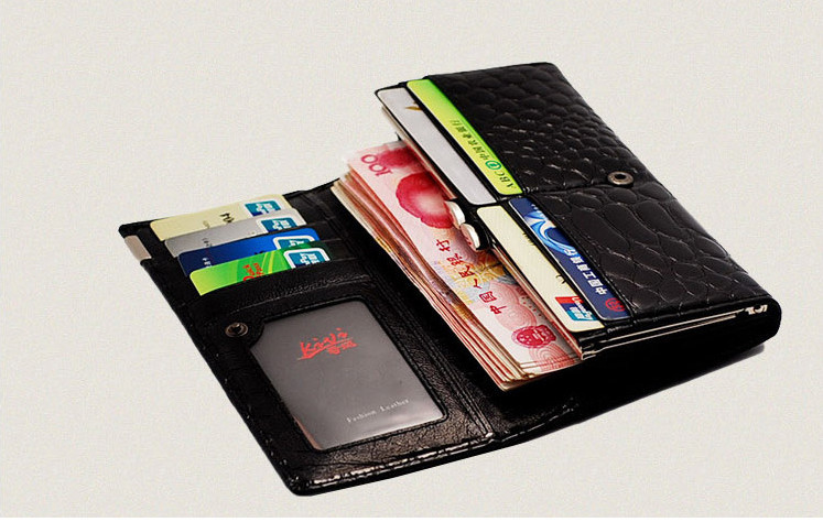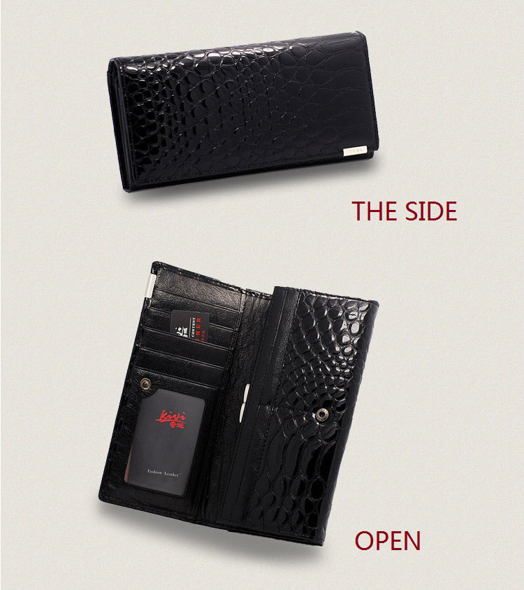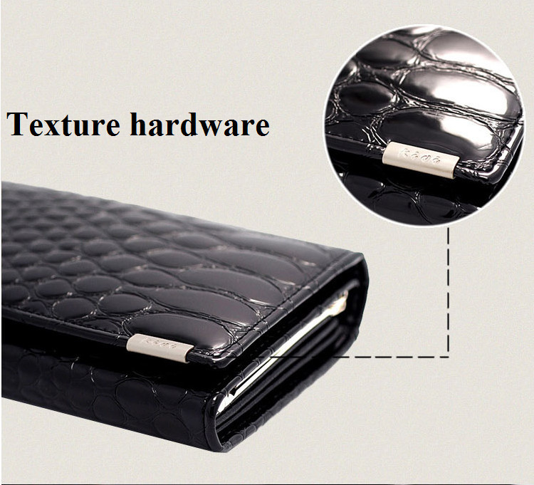 NEW 2014 Women brand long style leather fold zipper snaps oil wax leather clutch wallet phones free shipping