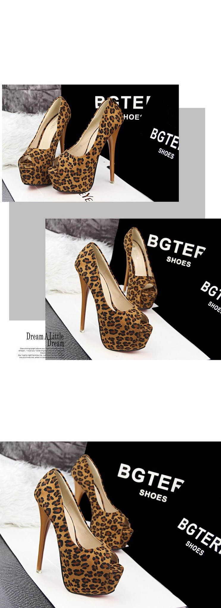 Free shipping new women pumps European style sexy skinny leopard fish head high with waterproof high
