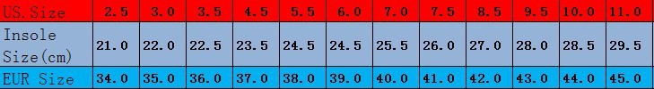 This size chart is according to U.S.MEN SIZE,Our Size Chart is according U.S. MEN SIZE standard and we have sizes 3,3.5,4.5,5.5,6,7,7.5,8.5,9.5,10,10.5(Euro Size 35-45) for your choice. If you need size 3 (Euro Size 35) please choose size 20.